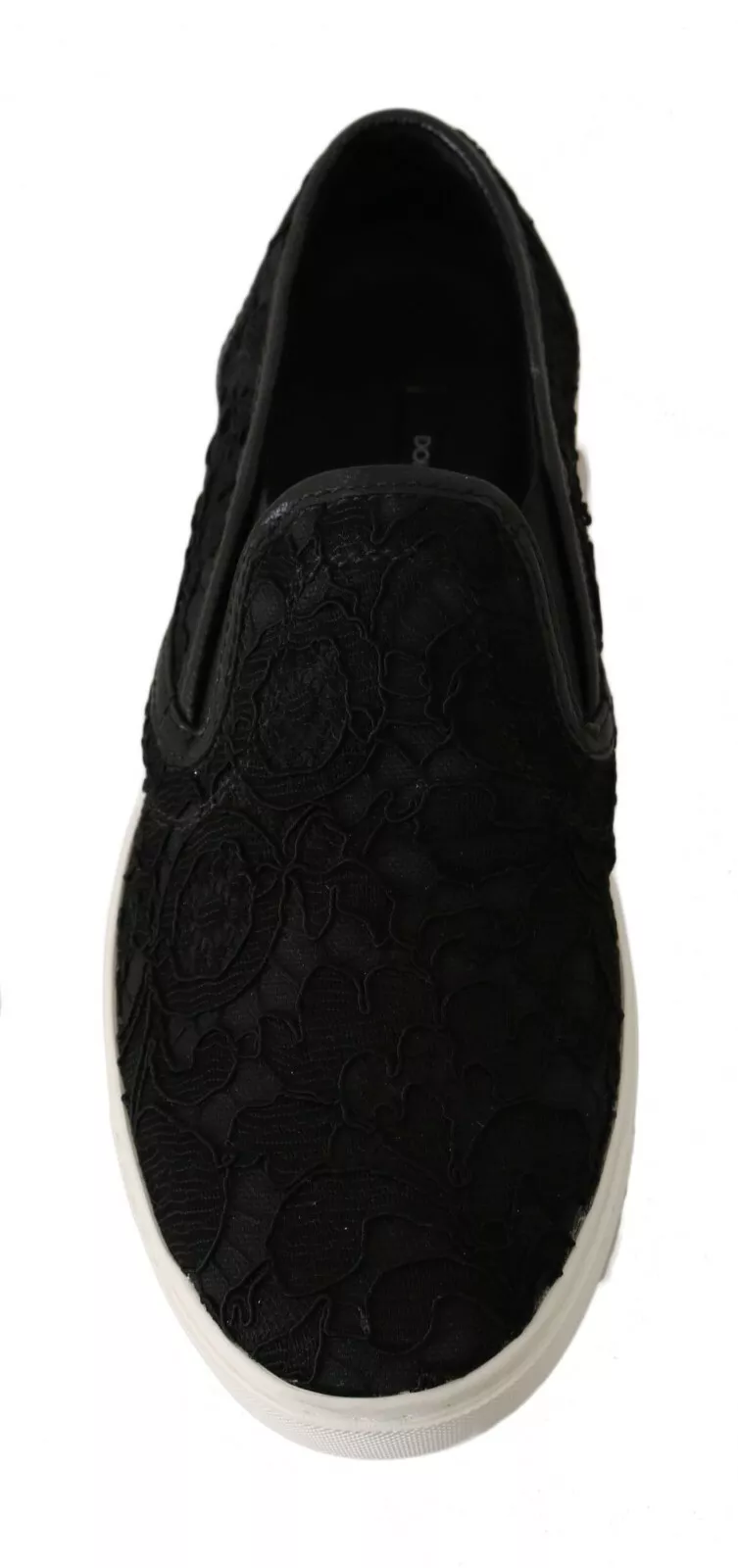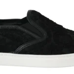 Black Lace Leather Logo Flat Slip-On Sneakers