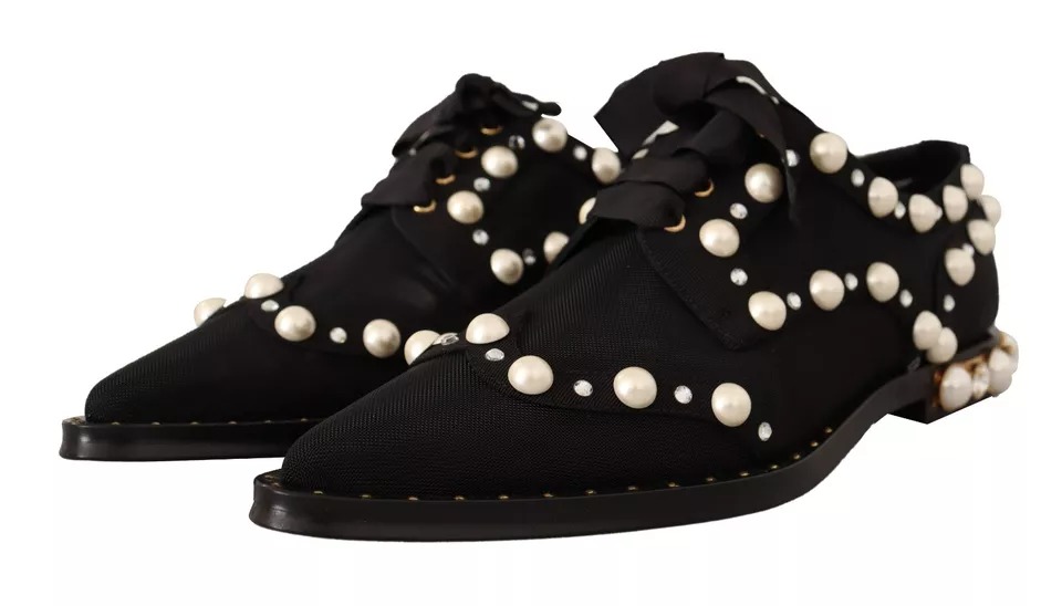 Black Lace Up Jewelled Formal Flats Shoes