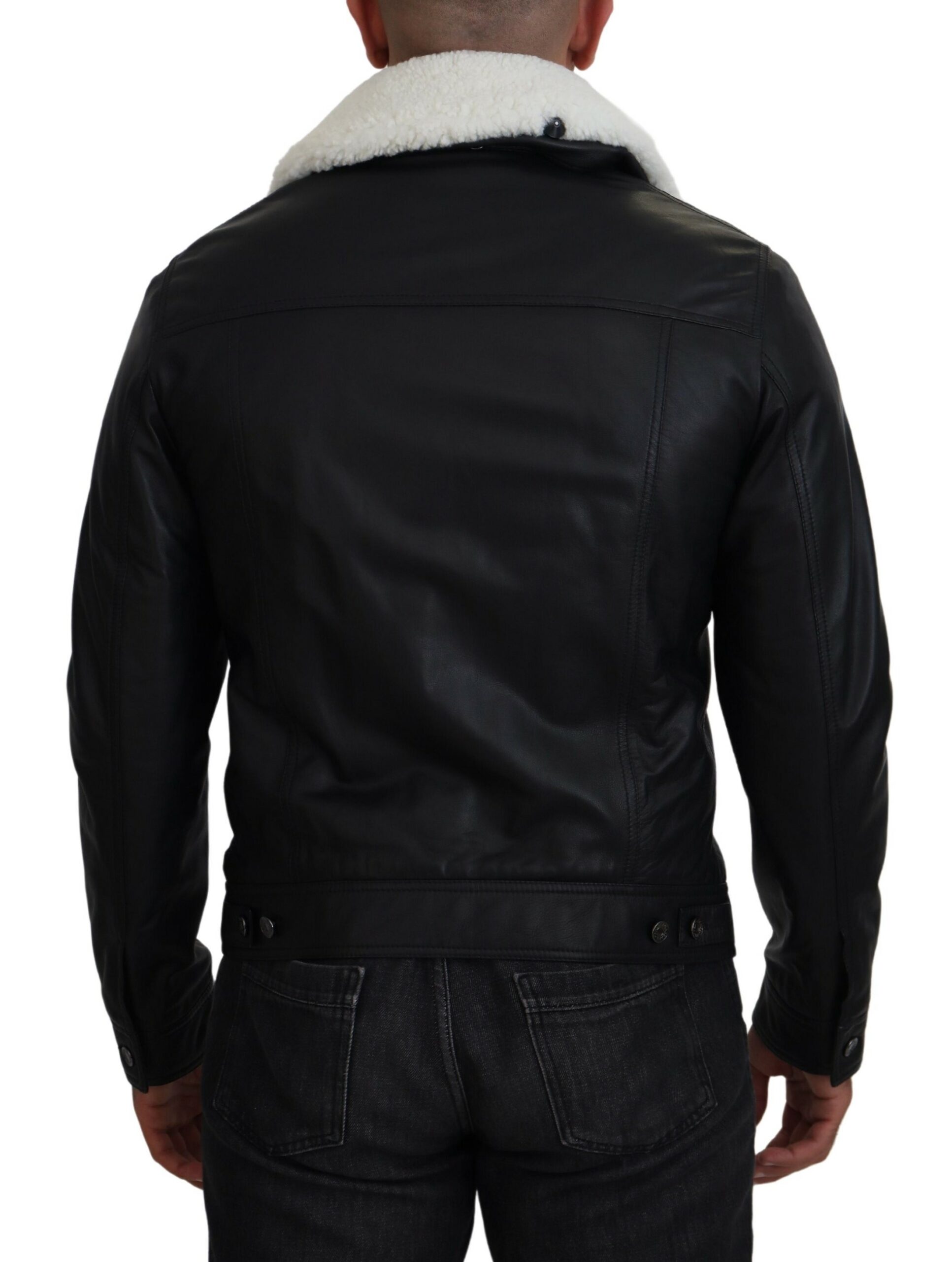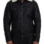 Black Lamb Leather Collared Men Coat Jacket