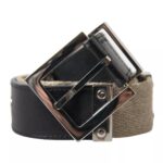 Black Leather Beige Strap Silver Metal Buckle Belt