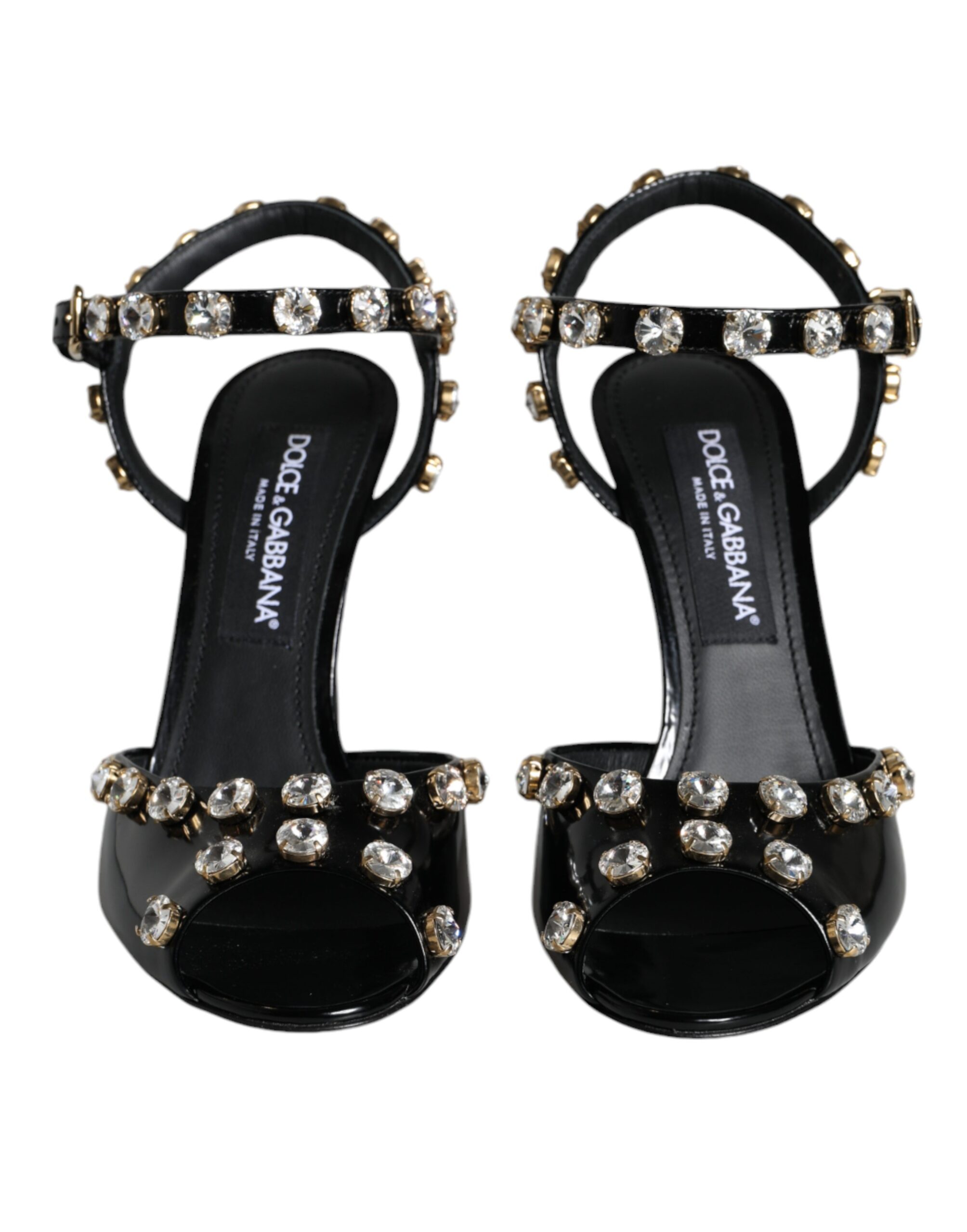 Black Leather Crystal Ankle Strap Sandals Shoes