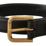 Black Leather Embellished Crystal Logo Belt