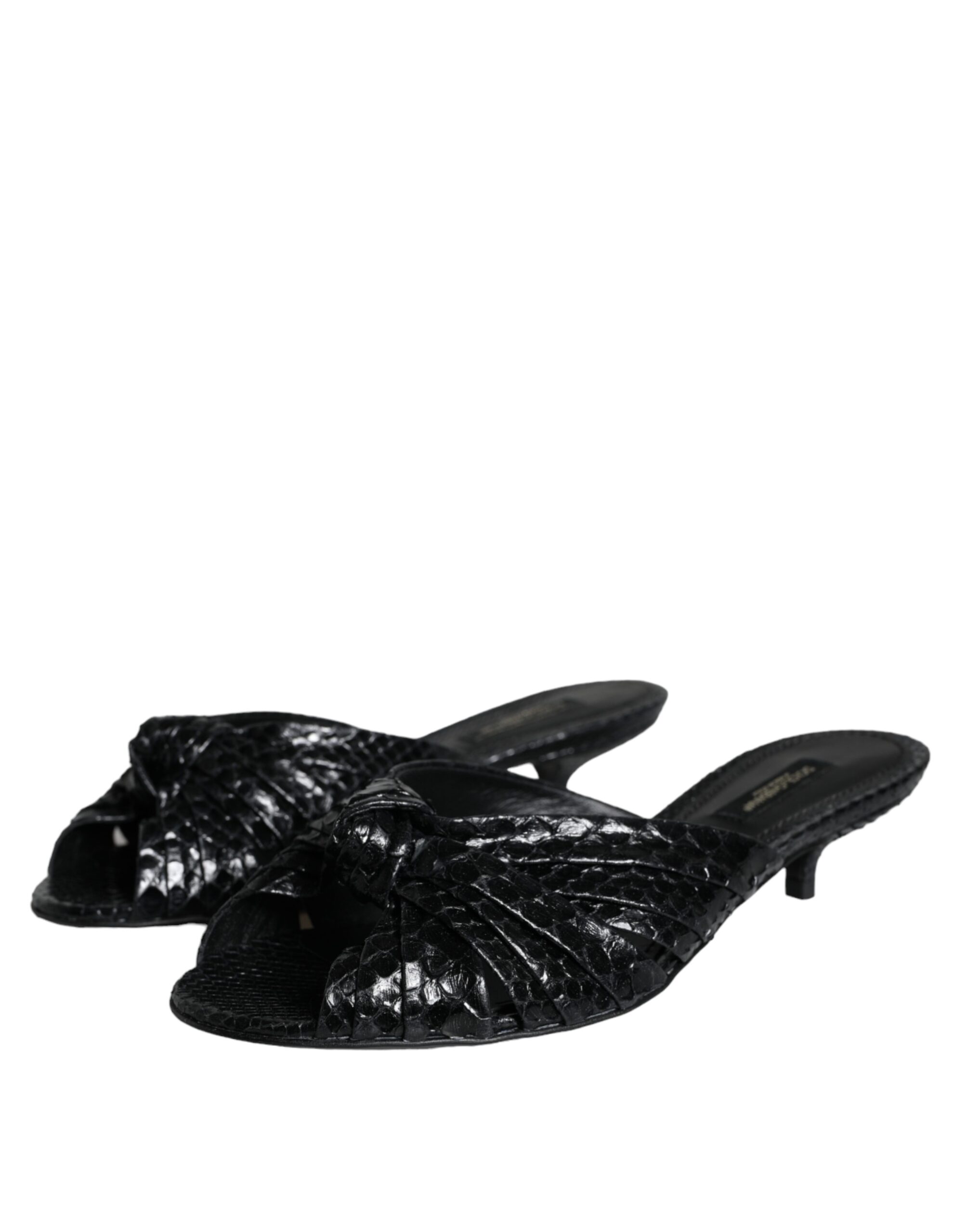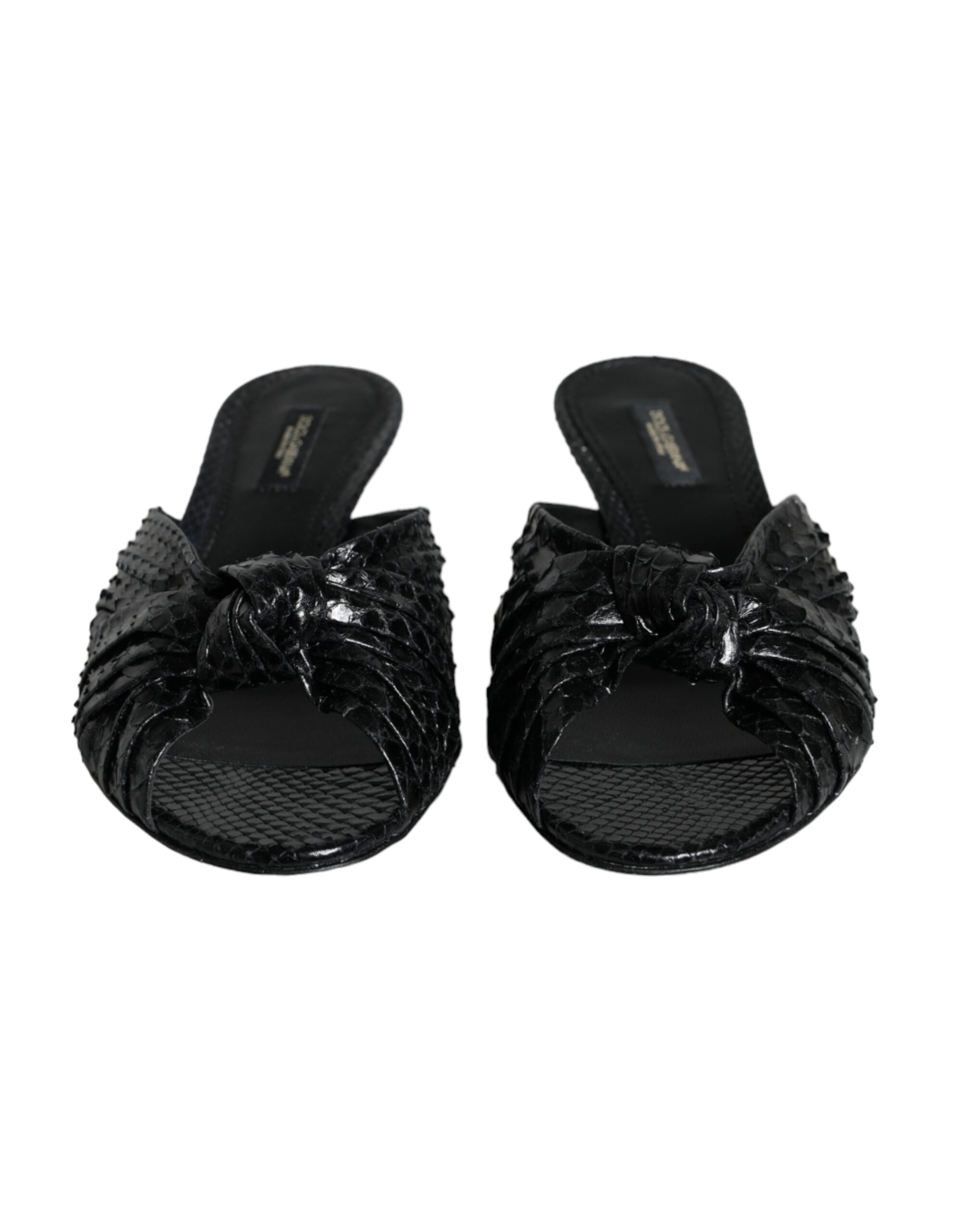 Black Leather Heels Slides Sandals Shoes