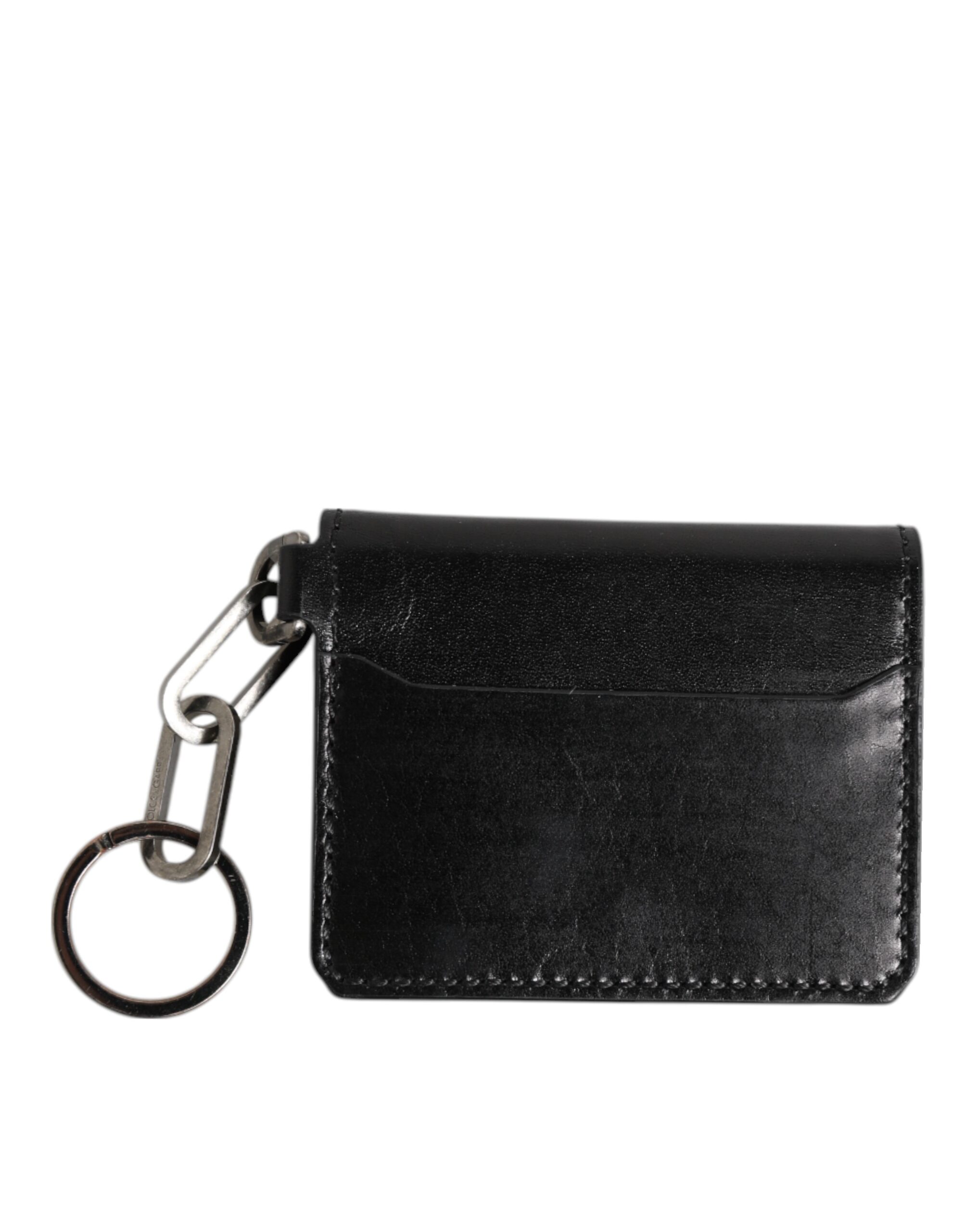 Black Leather Logo Embossed Key Chain Card Holder Wallet