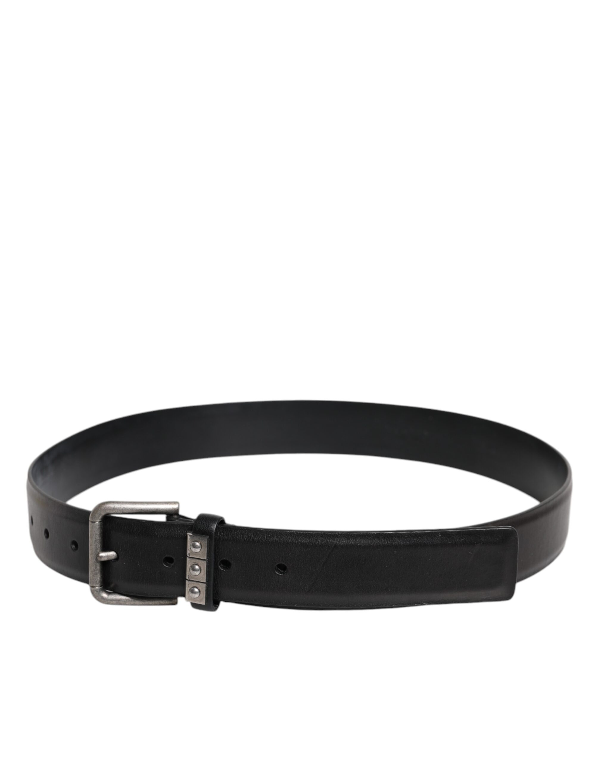 Black Leather Metal Buckle Classic Belt