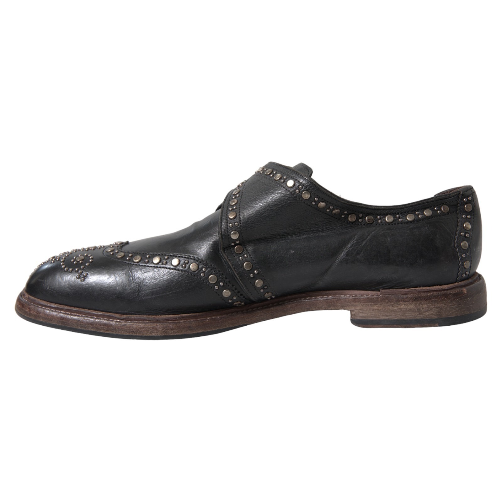 Black Leather Monk Strap Studded Dress Shoes