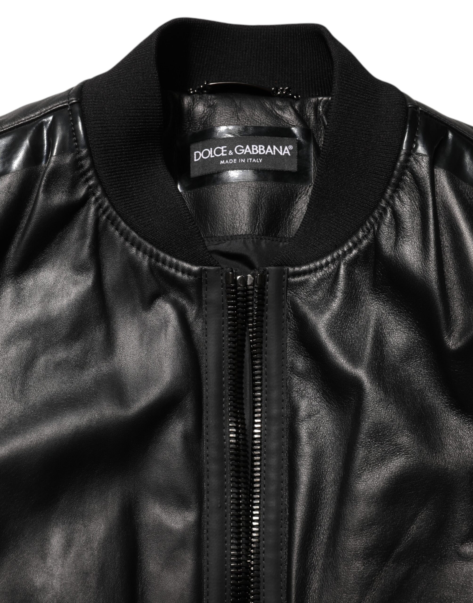 Black Leather Nylon FullZip Blouson Jacket