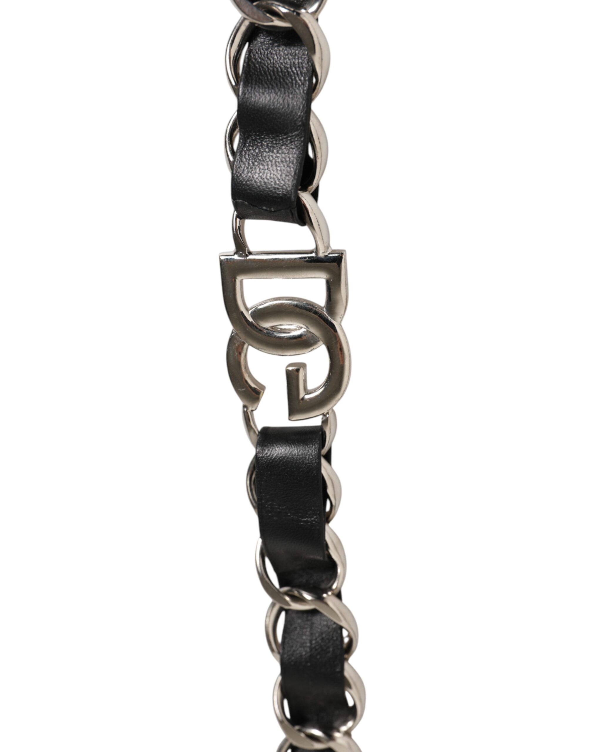 Black Leather Silver Chain Bag Accessory Shoulder Strap