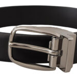 Black Leather Silver Metal Chrome Logo Buckle Belt