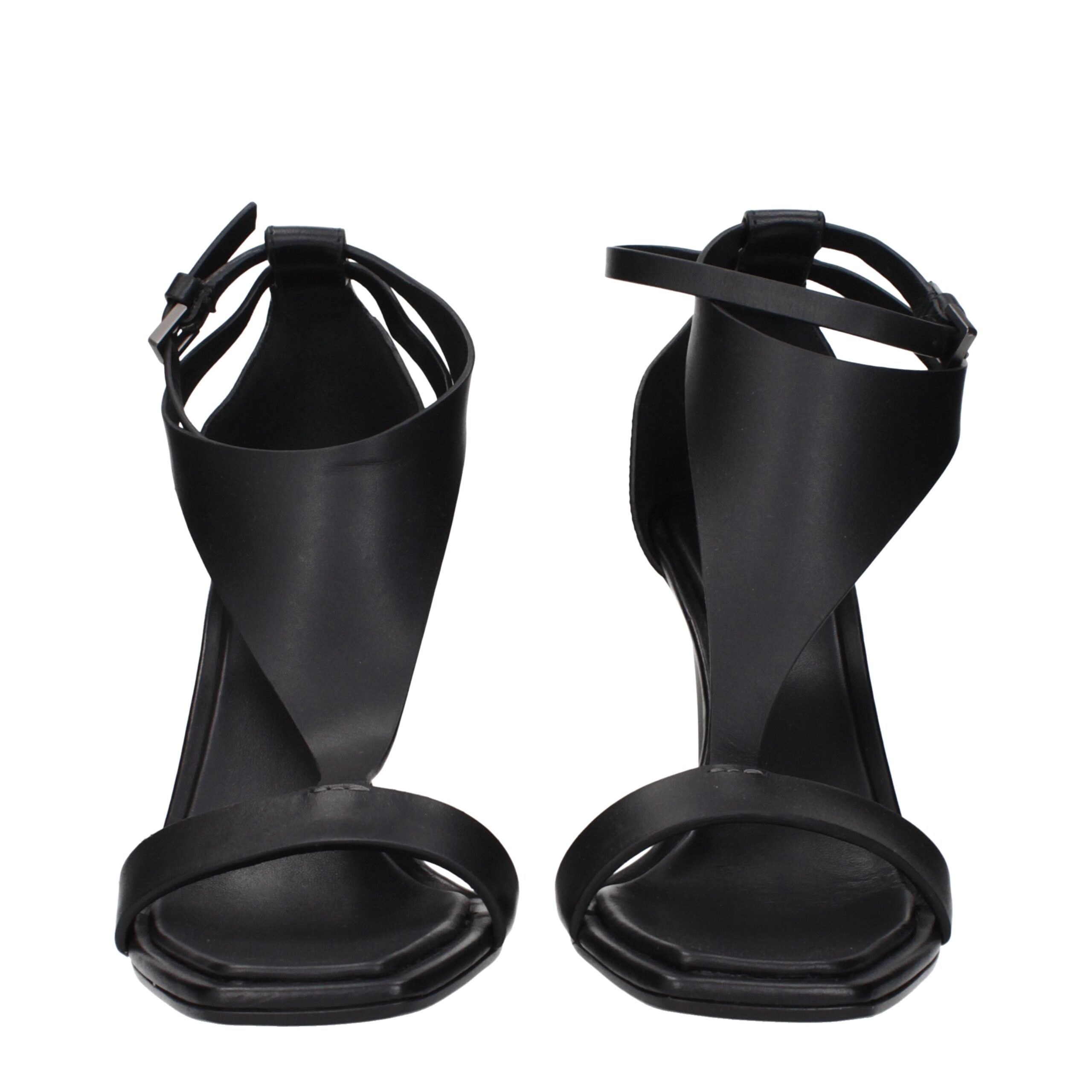 Black Leather Stiletto Heel Sandals