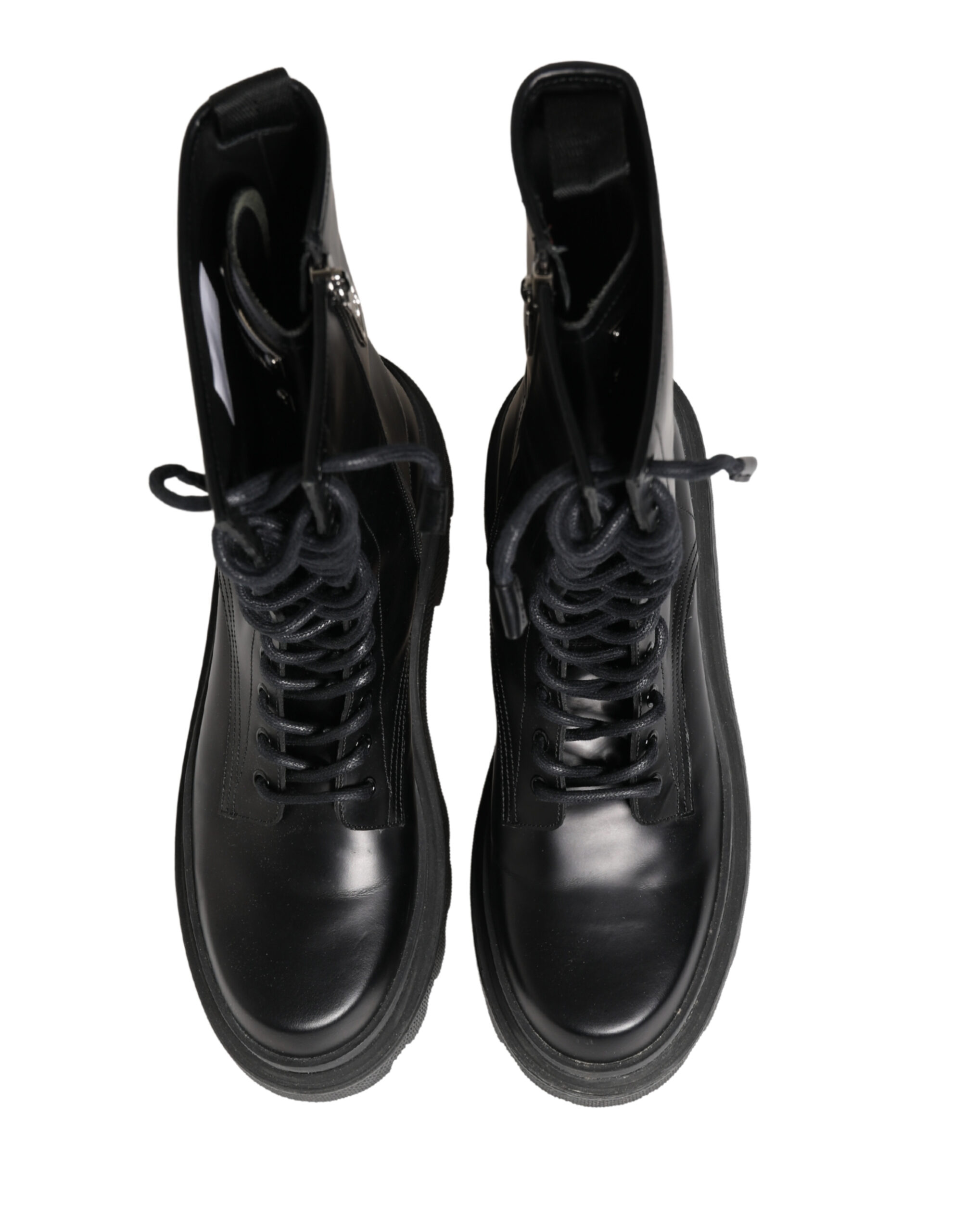 Black Leather Trek Sole Combat Boots Shoes
