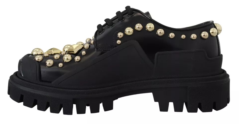 Black Leather Trekking Derby Embellished Shoes