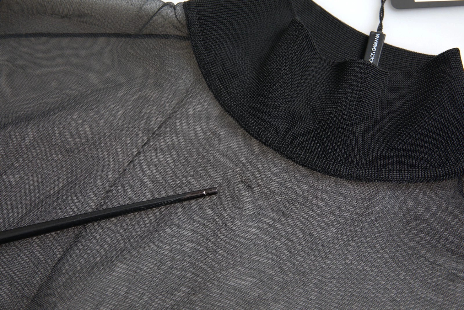 Black Mesh Turtleneck Sheer Blouse Top