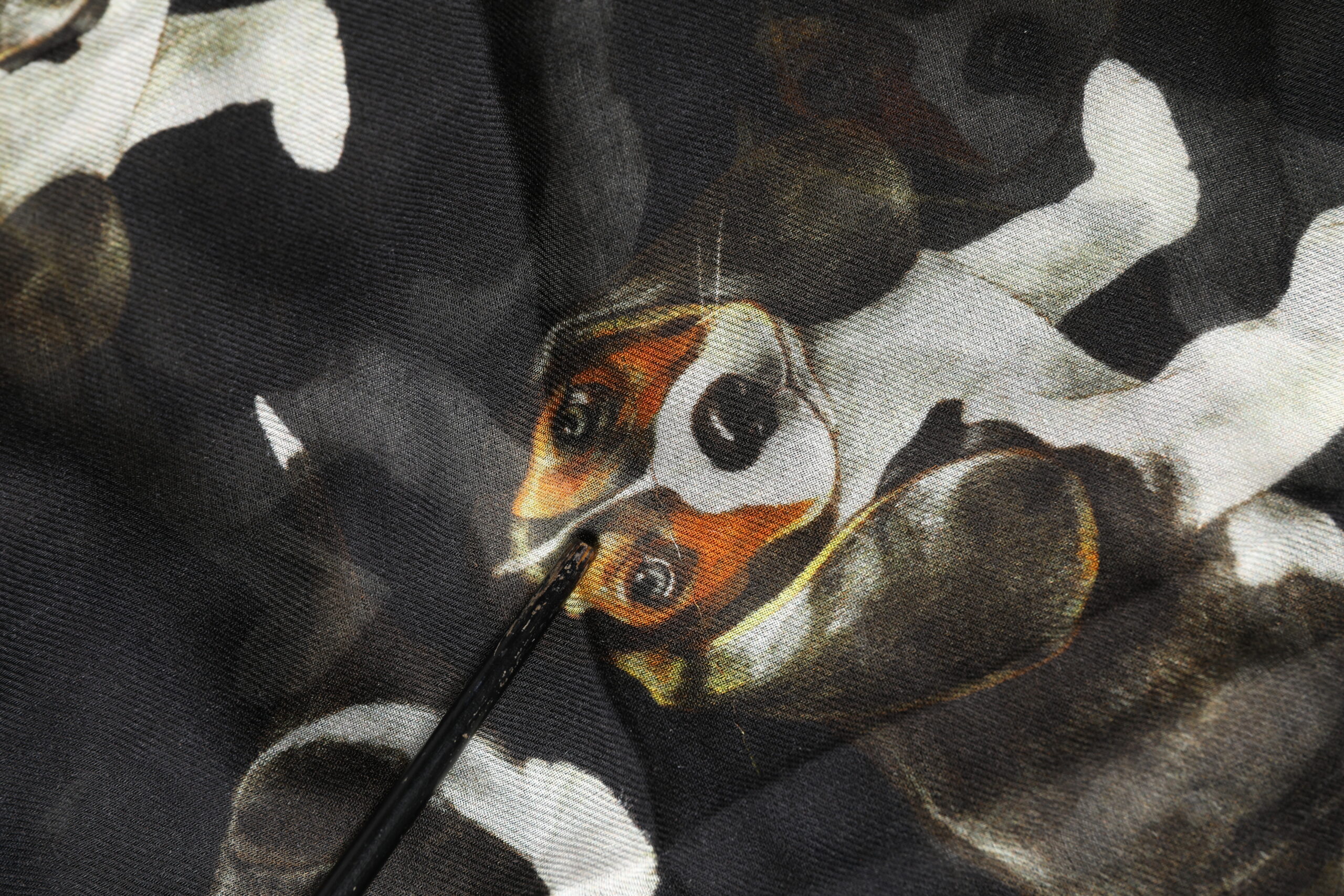 Black Modal Wool Dog Print Fringed 178cm x 64cm Scarf