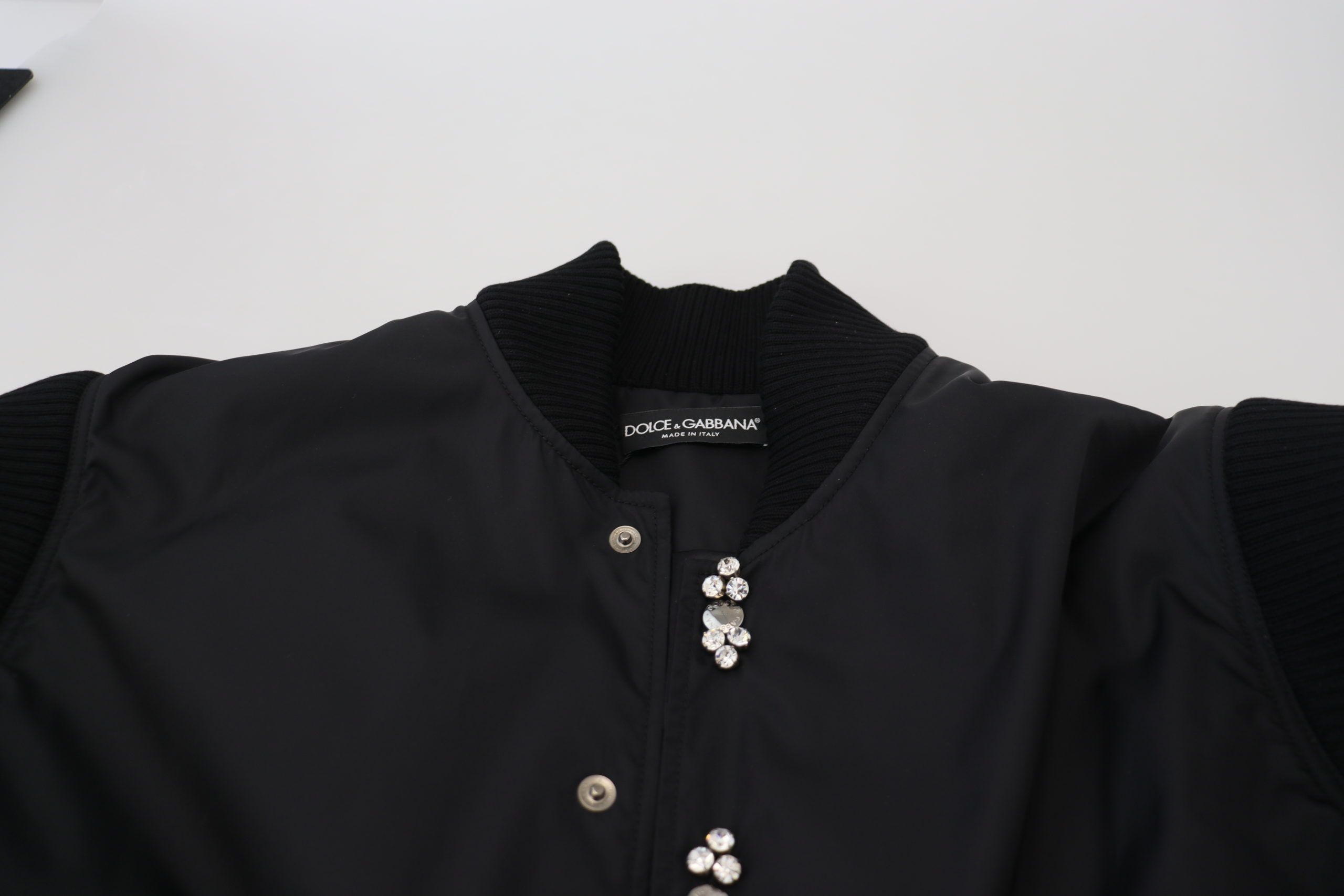 Black Nylon Crystals Coat Buttons Jacket