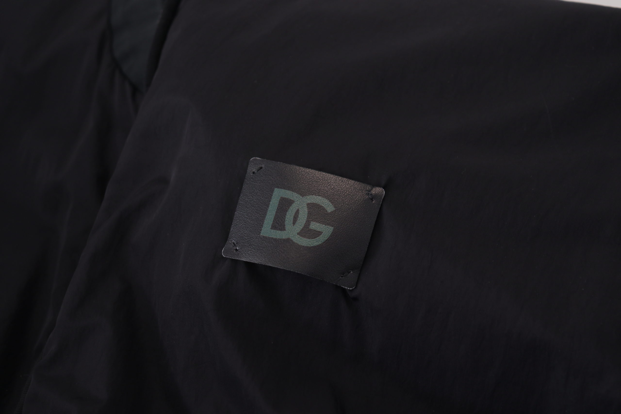 Black Nylon Logo Bomber Zipper Jacket