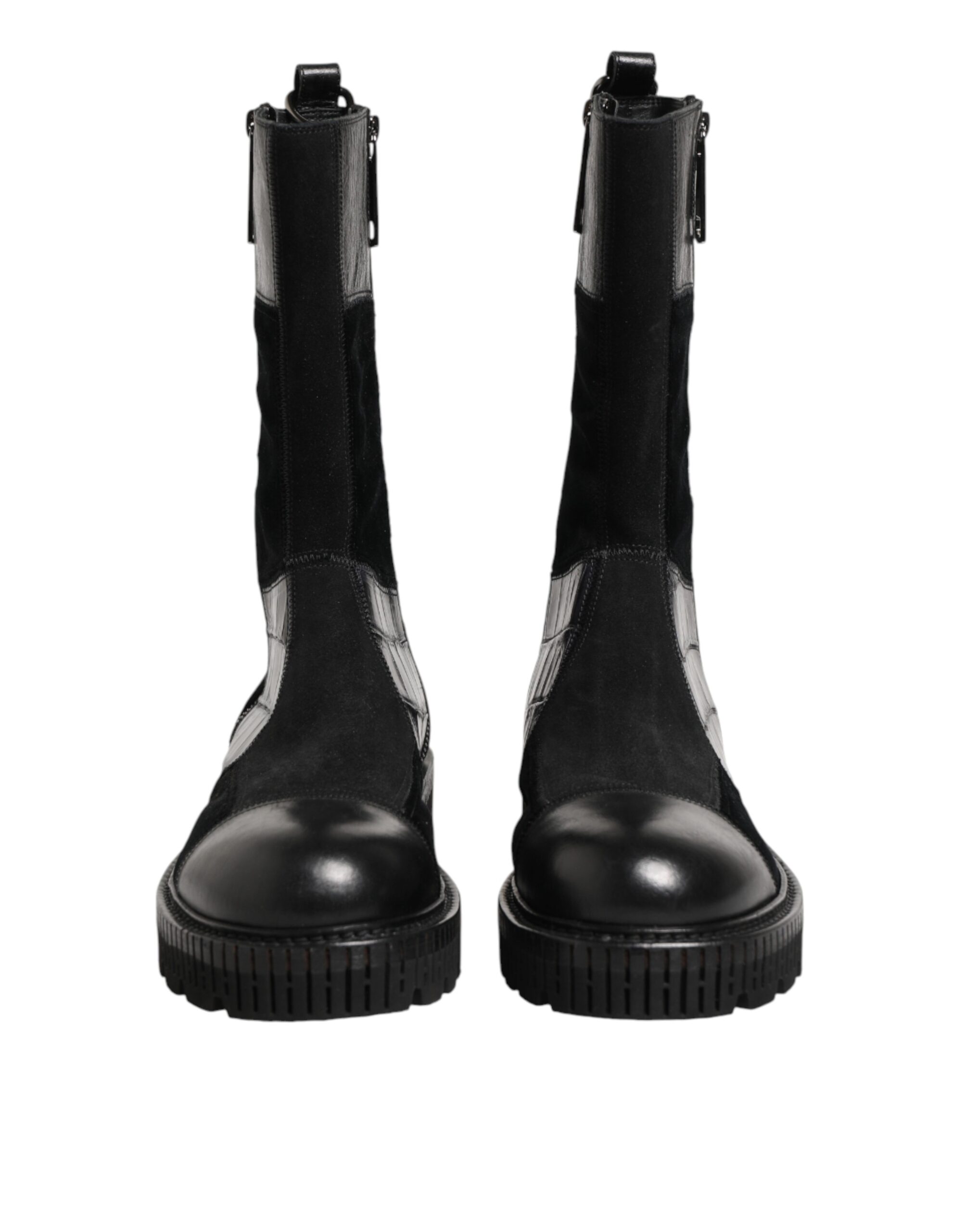 Black Patchwork Leather Mid Calf Boot Shoes