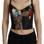 Black Patchwork Sicily Blouse Corset Cropped Top