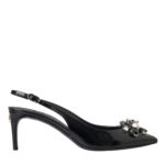 Black Patent Leather Crystal Slingback Shoes