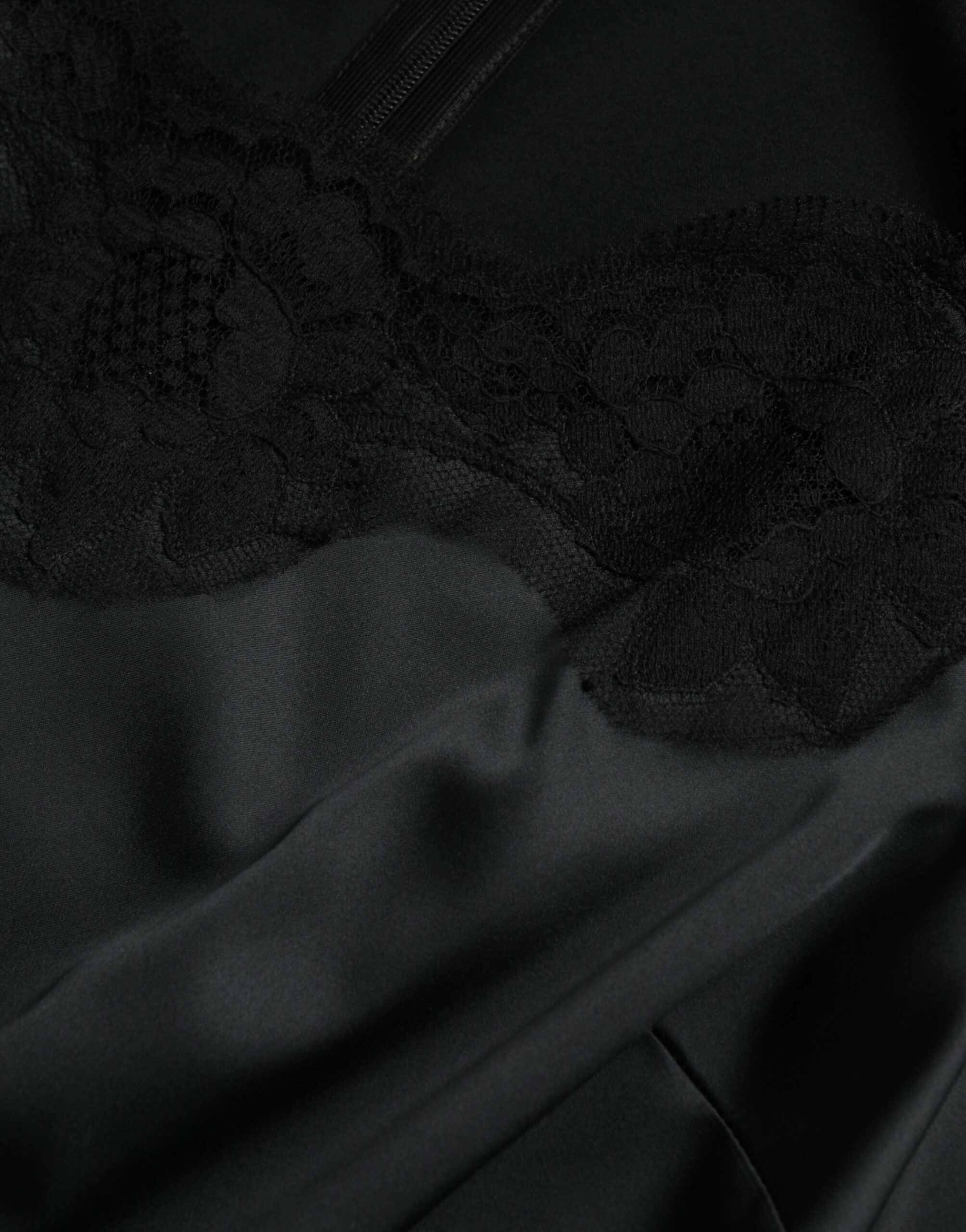 Black Polyester Lace Trim Sheath Midi Dress