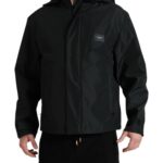 Black Polyester Logo Plaque Hooded Jacket