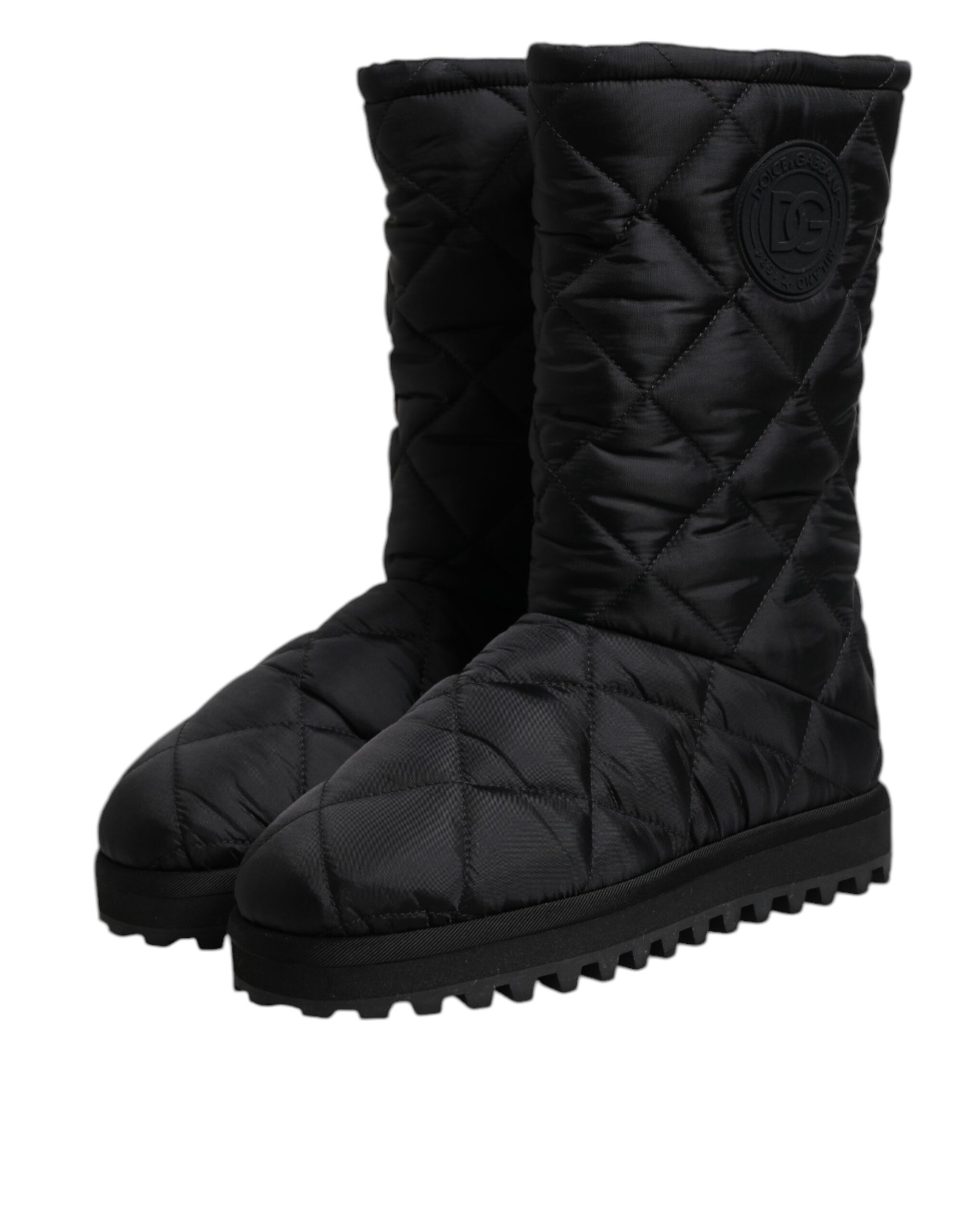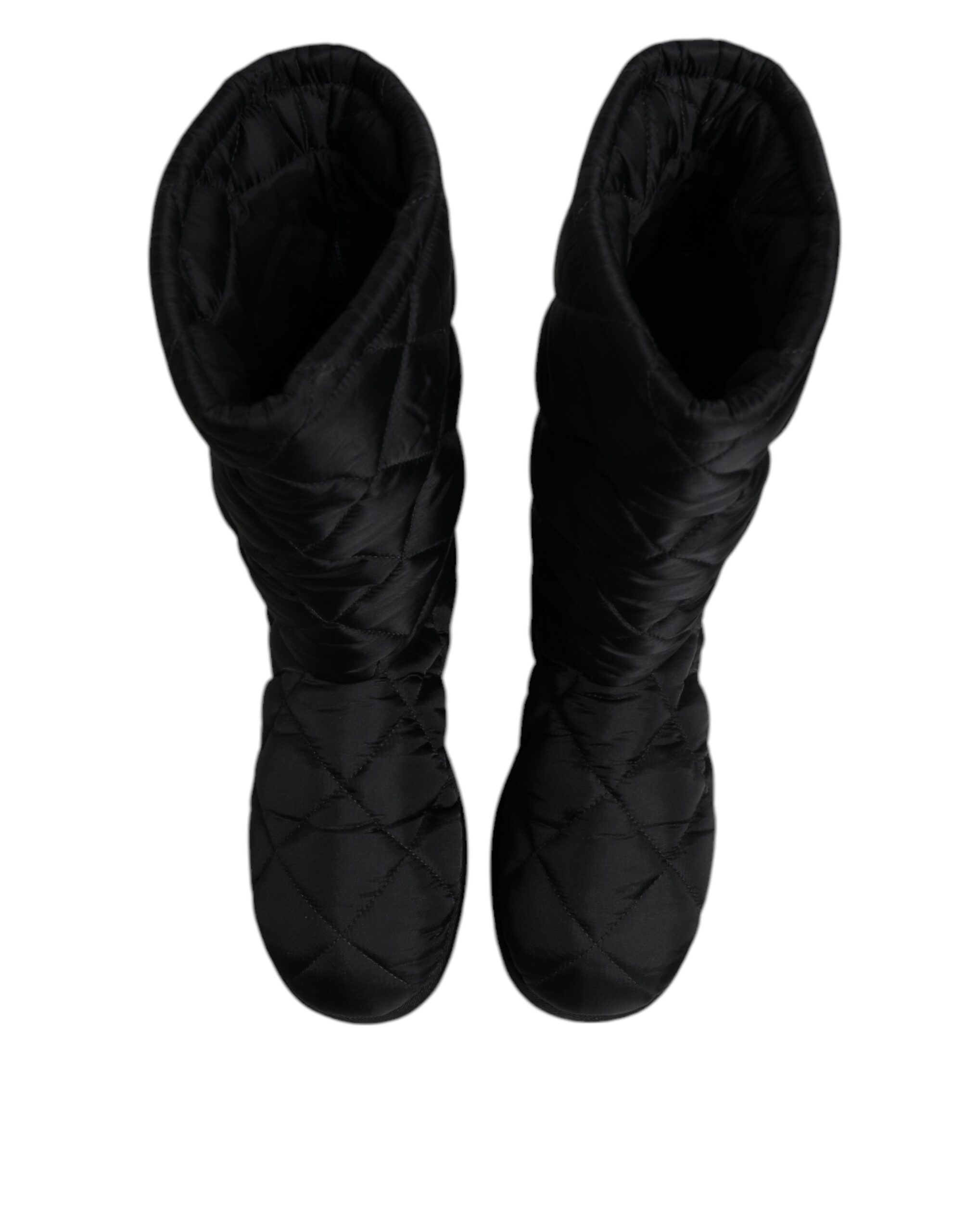 Black Polyester Padded Mid Calf Boots Winter Shoes