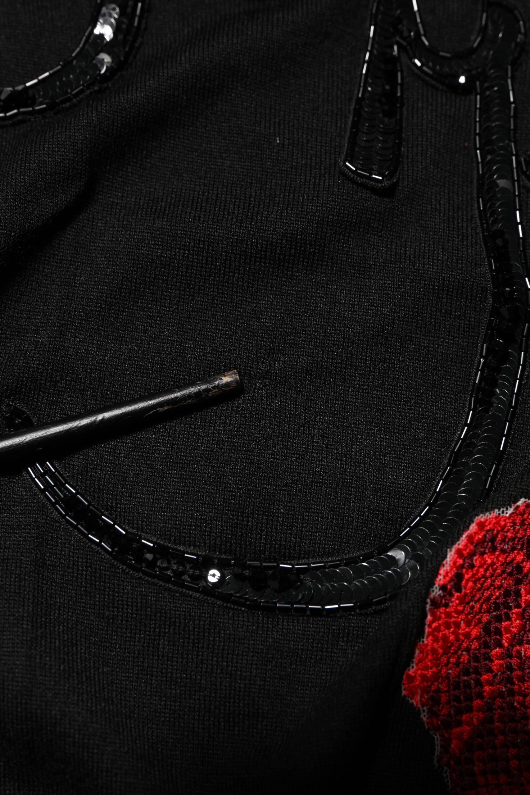 Black Rose Sequin Embellishments Blouse Top