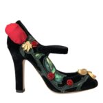 Black Roses Crystal Brooch Mary Jane Shoes
