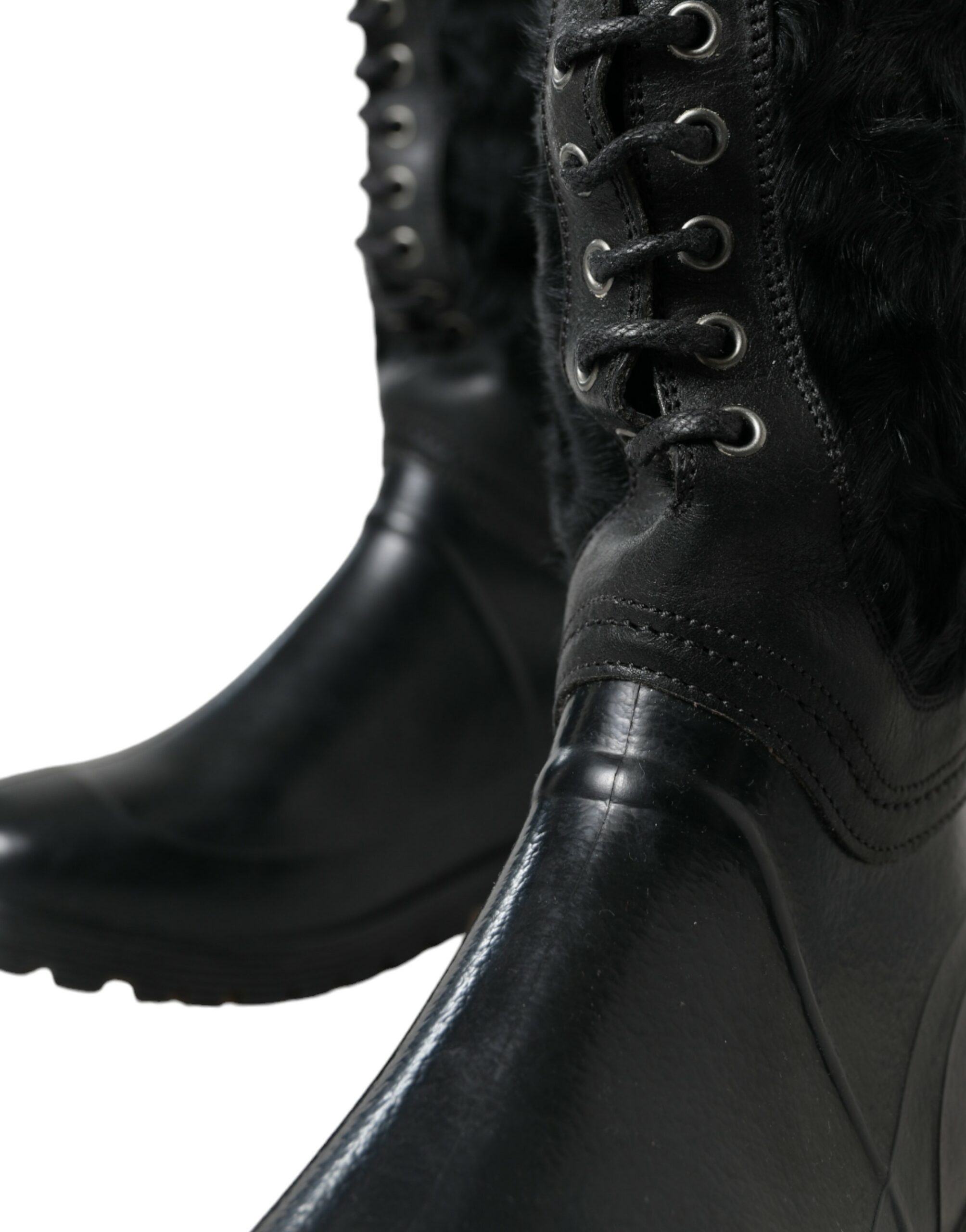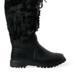 Black Rubber Lace Up Shearling Rain Boots Shoes