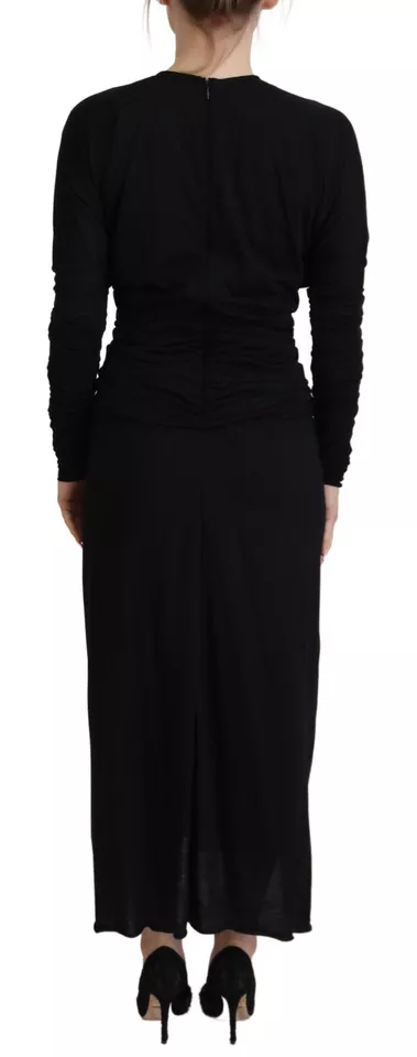 Black Sheath Midi Gown Wool Wrap Dress