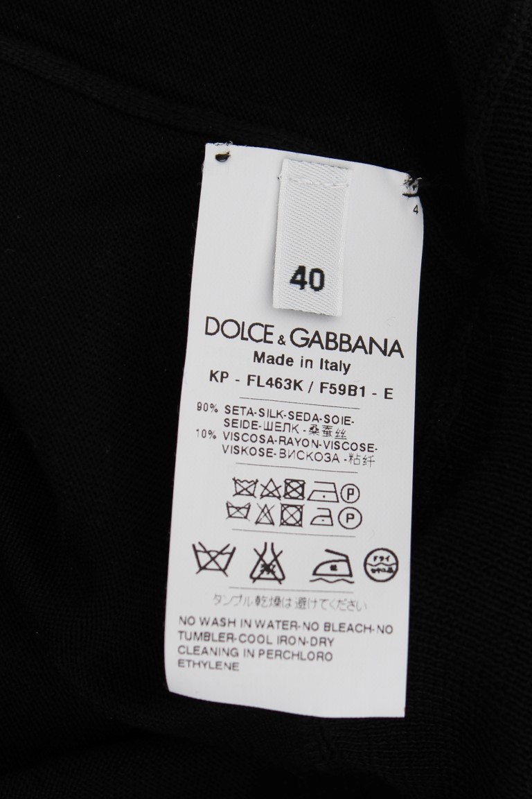 Black Silk Floral Embroidered Polo Top