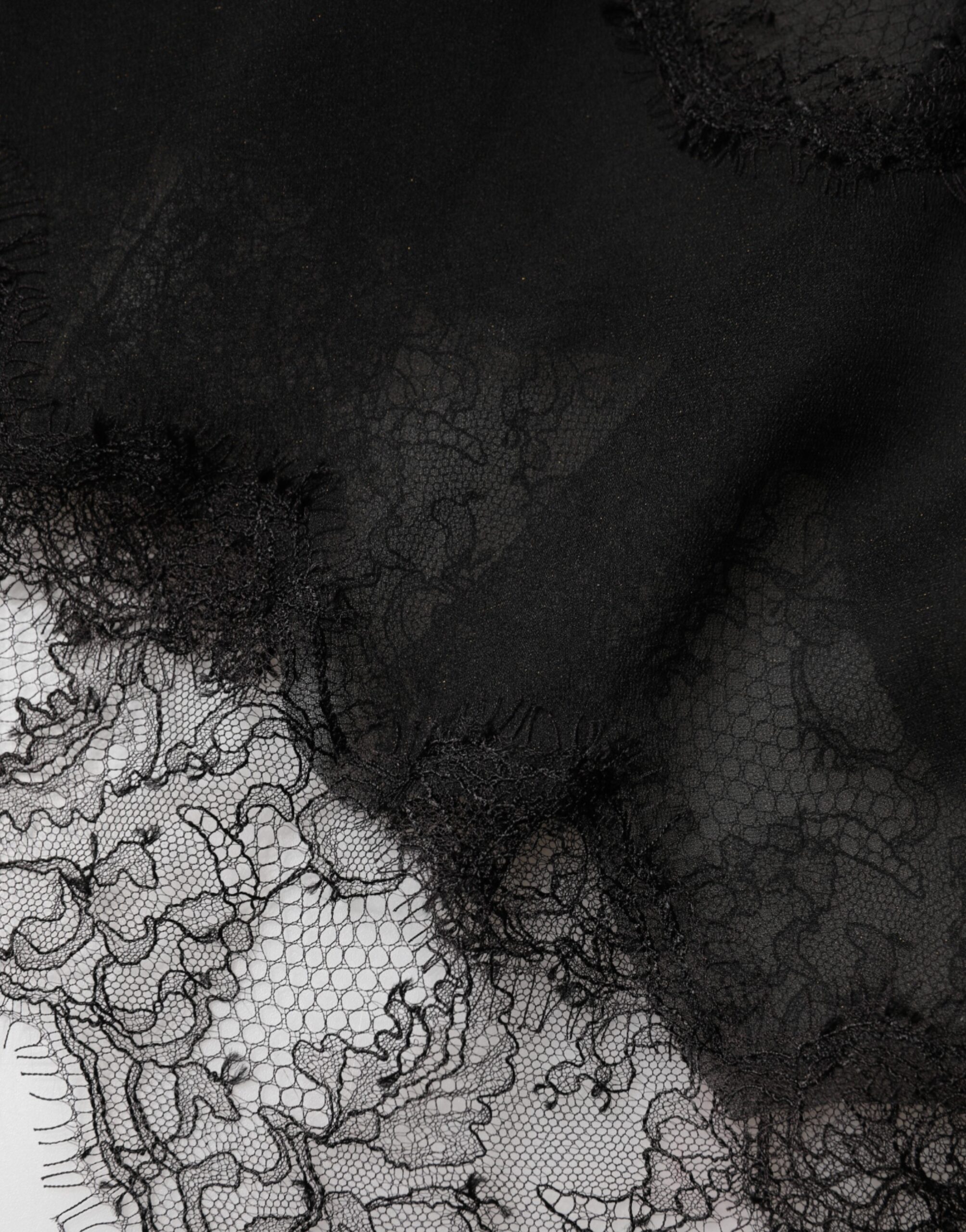 Black Silk Floral Lace Chemise Lingerie Top