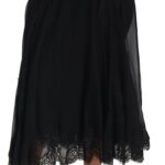 Black Silk Lace Trim High Waist Midi Skirt