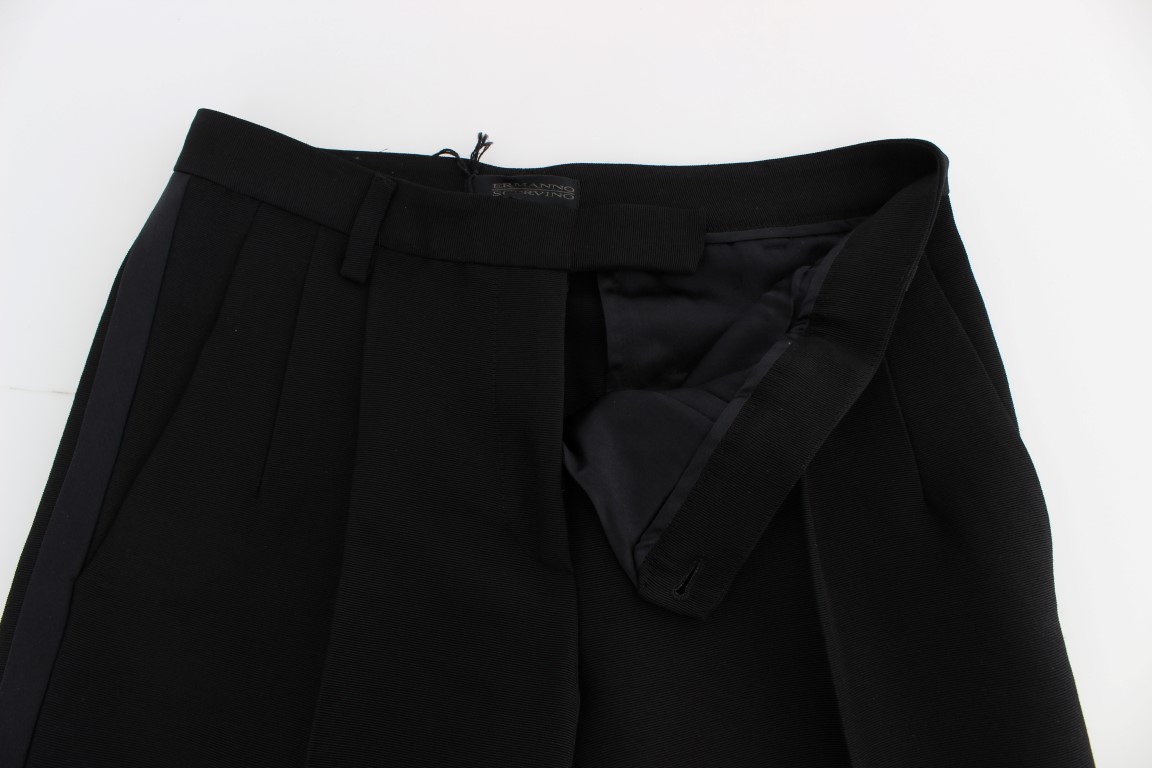 Black Striped Cotton Blend Wide Legs Pants