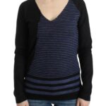 Black striped V-neck sweater