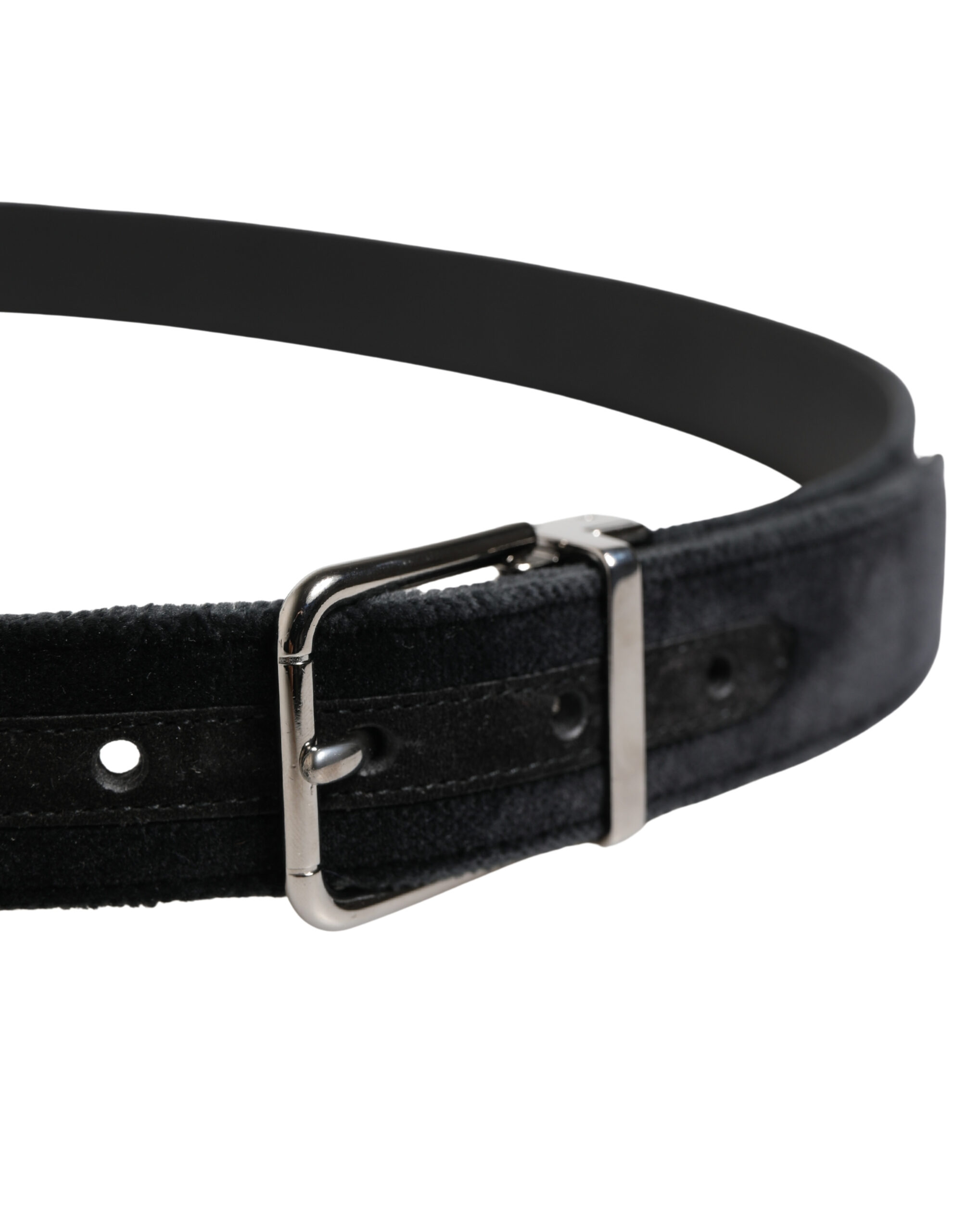 Black Suede Silver Tone Metal Buckle Men Belt