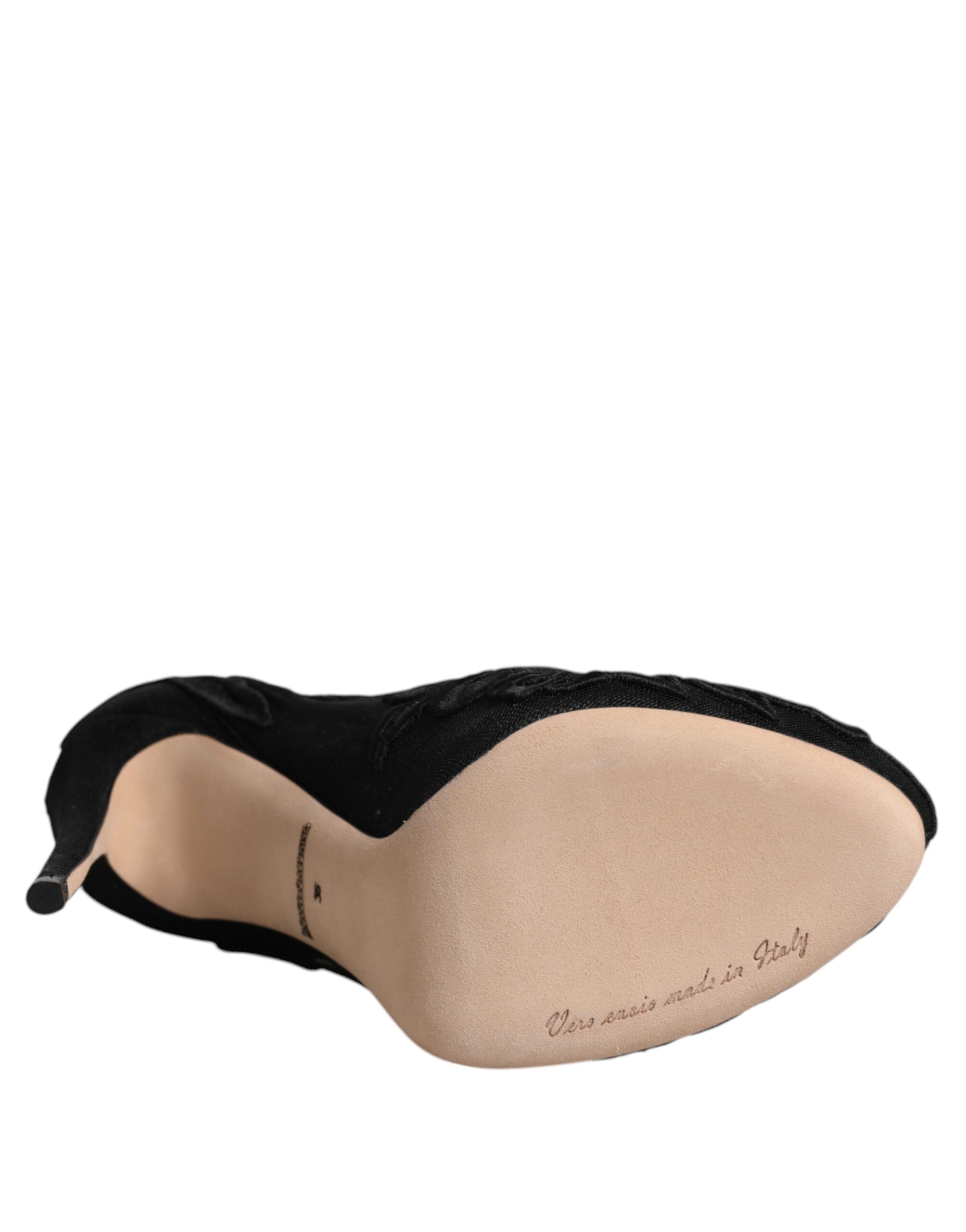 Black Tulle Stretch Heels Mid Calf Boots Shoes