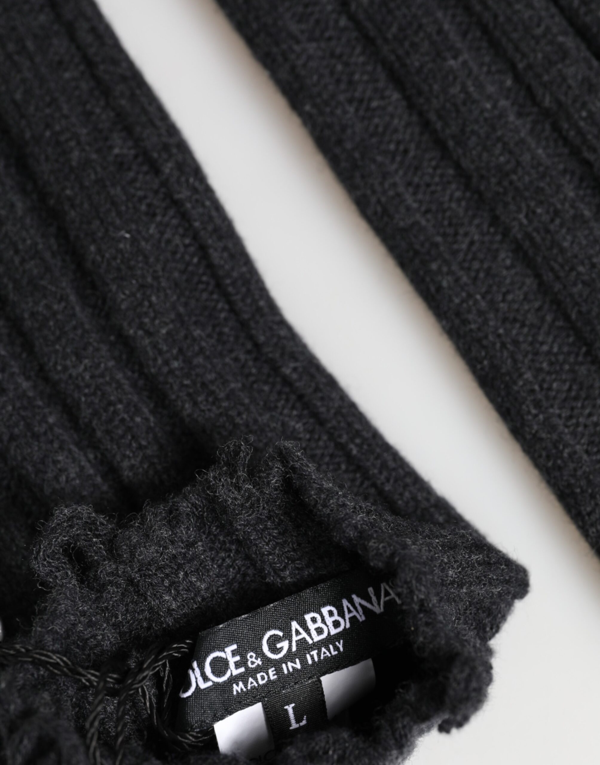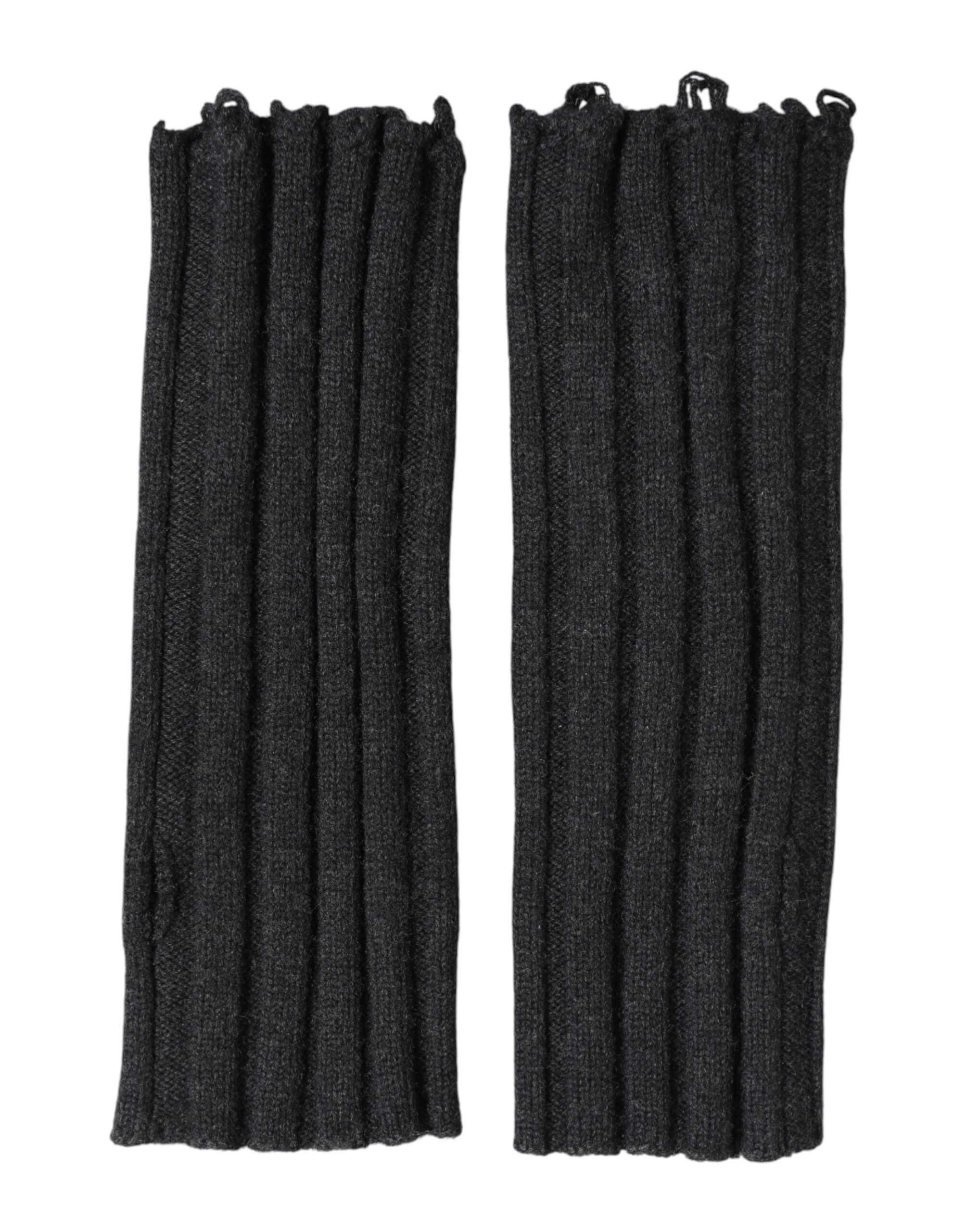 Black Virgin Wool Knitted Fingerless Gloves