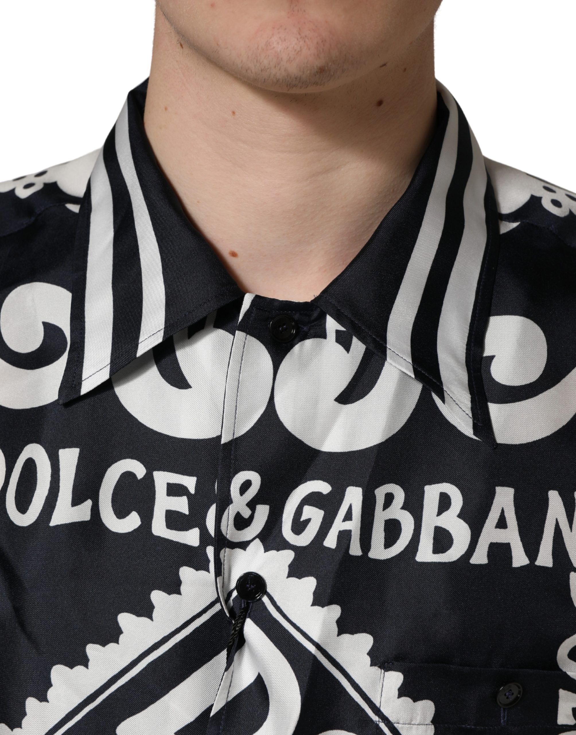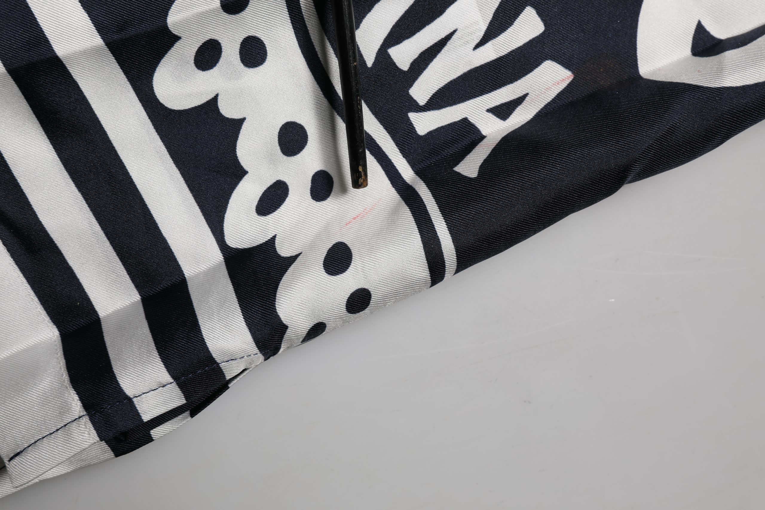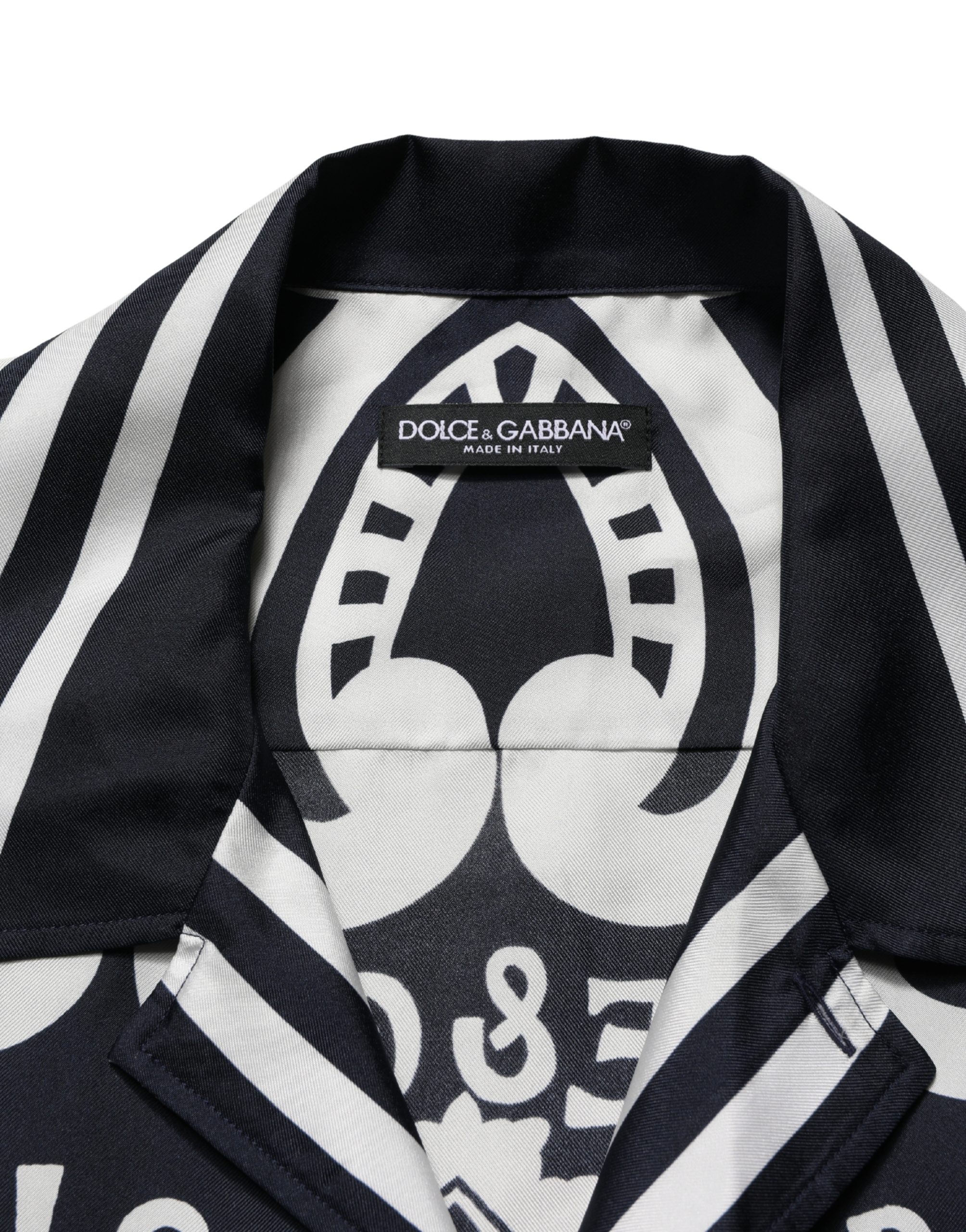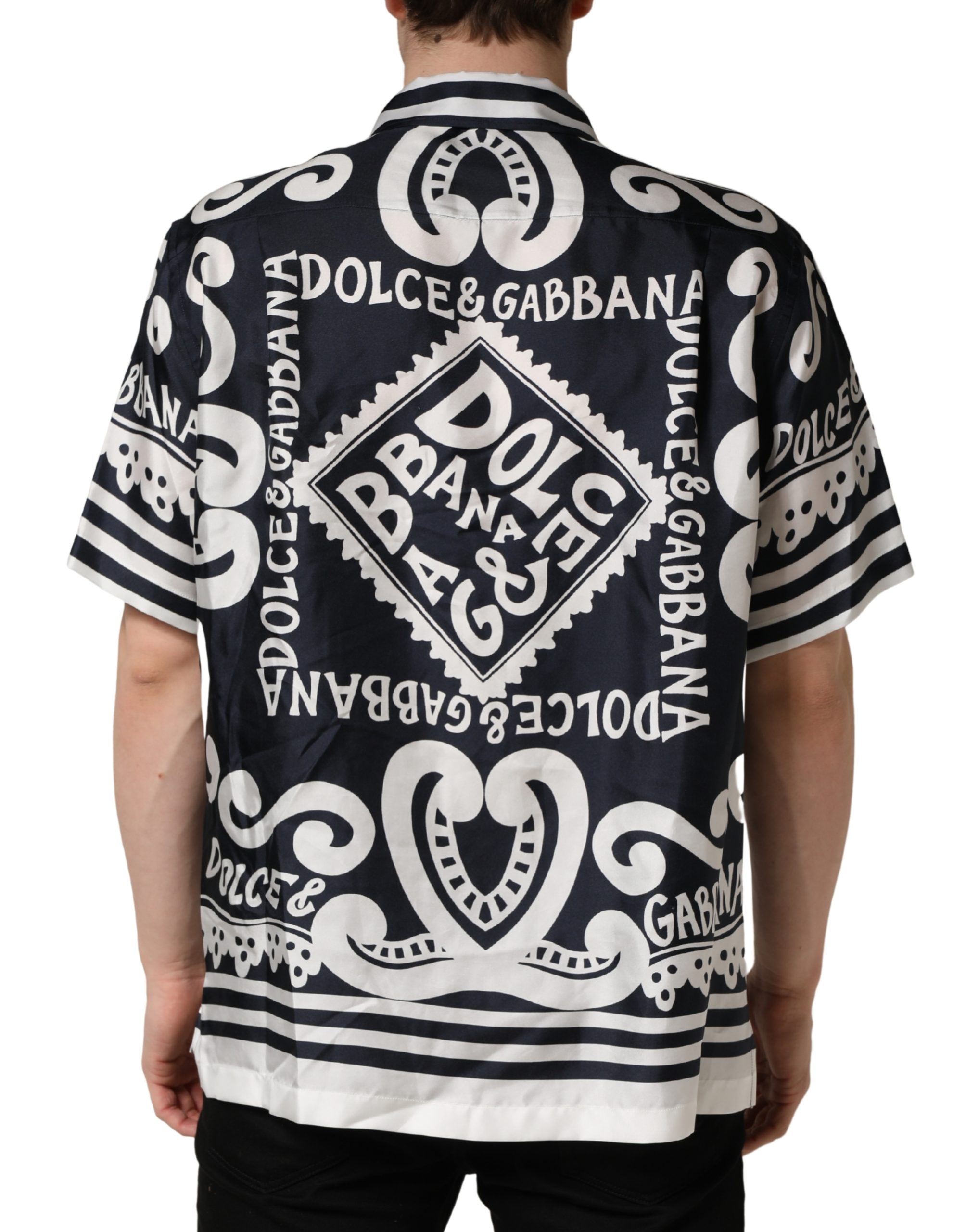 Black White Marina Print Silk Hawaii Shirt