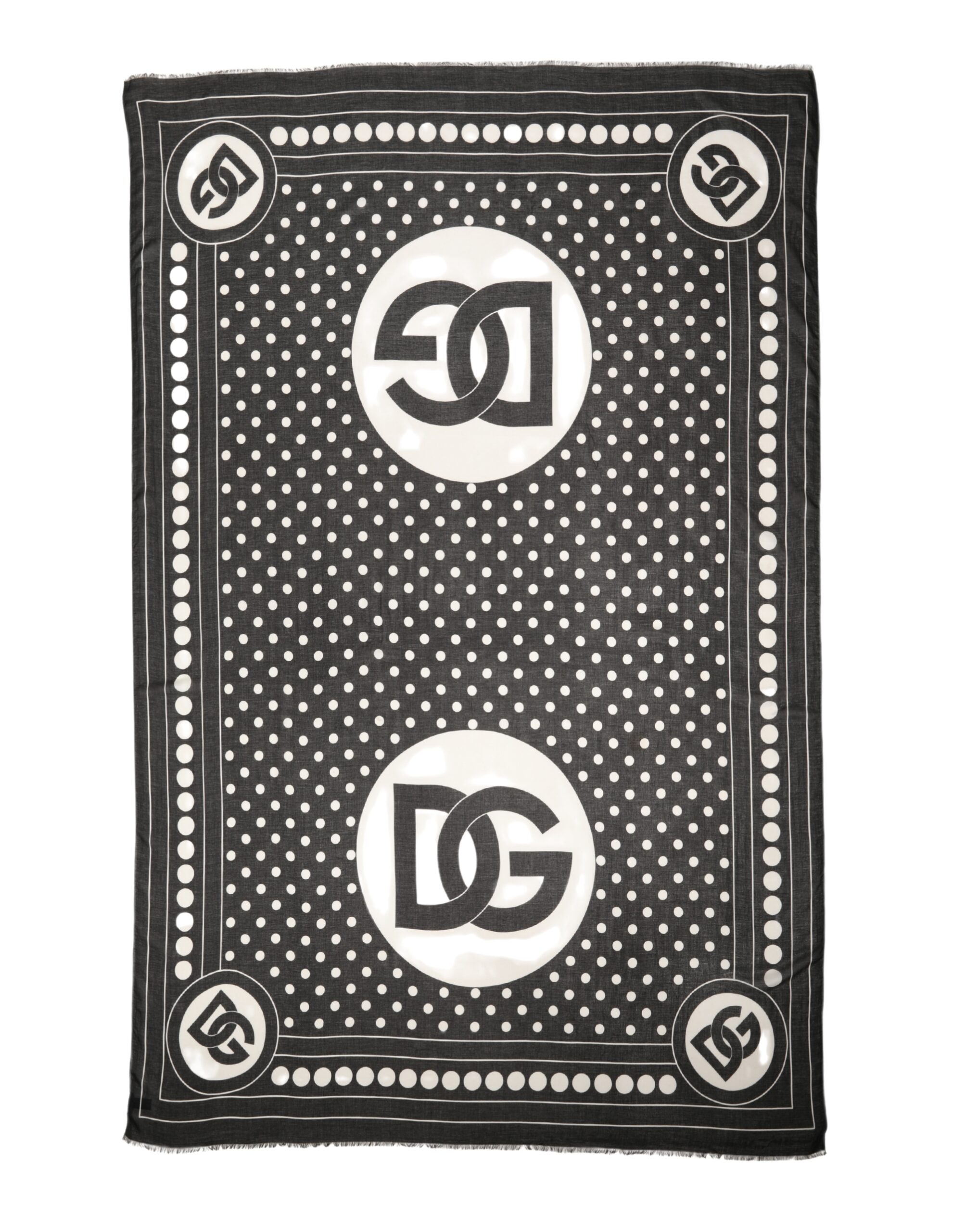 Black White Polka Dot Logo Stole Wrap 188cm x 116cm Scarf