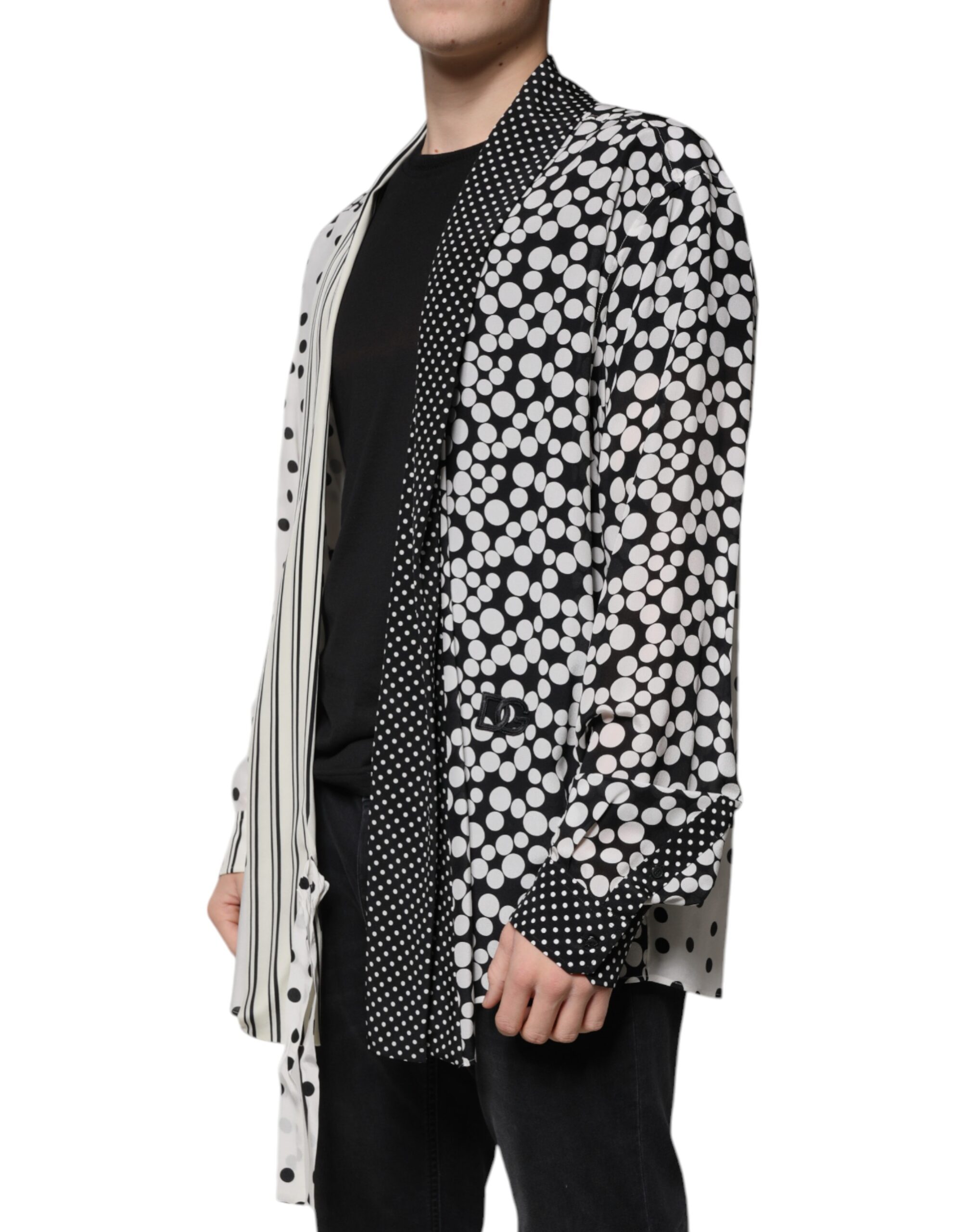 Black White Polka Dots Silk Men Casual Shirt