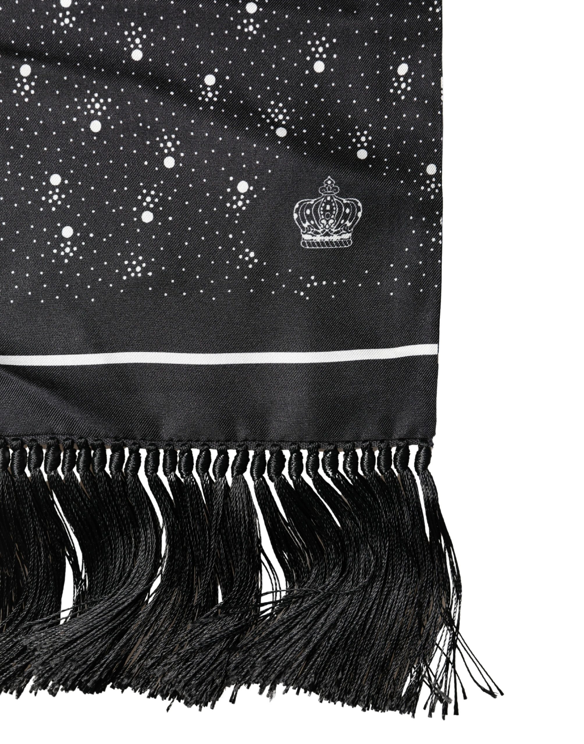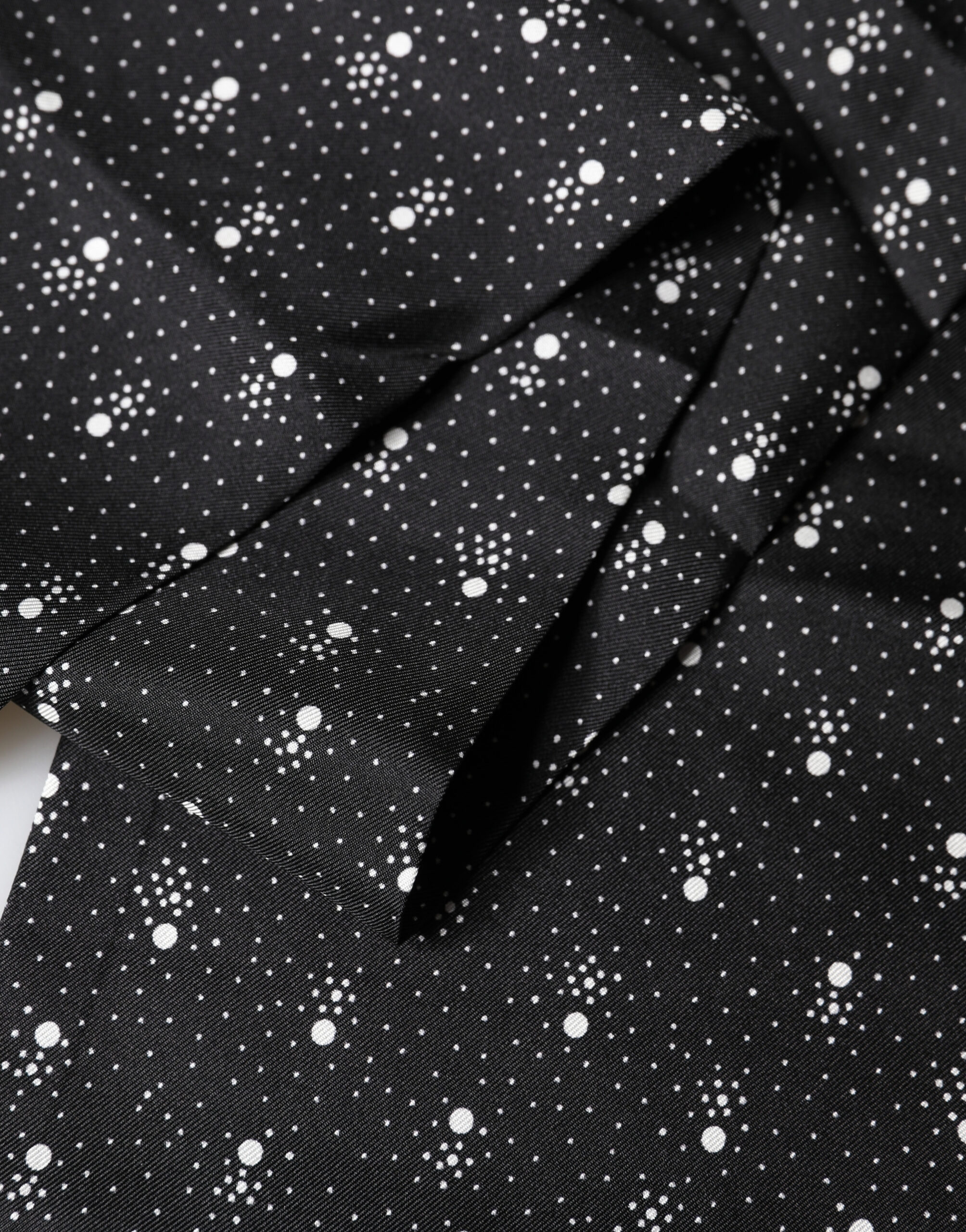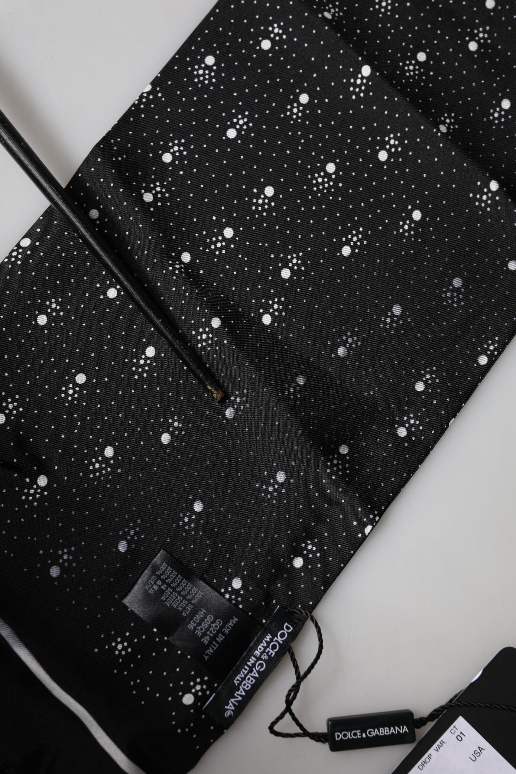 Black White Silk Dotted Print Foulard 140cm X 15cm Scarf