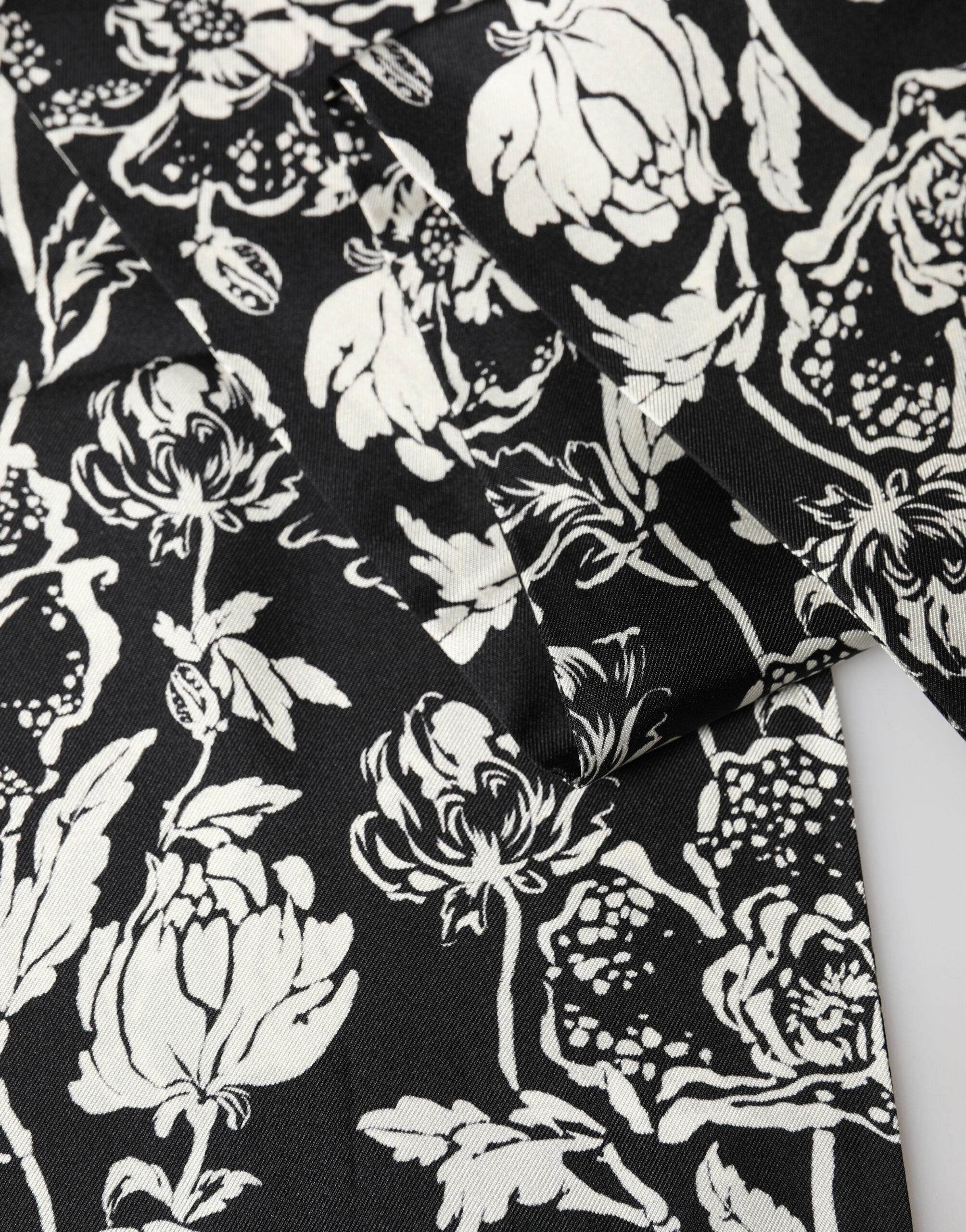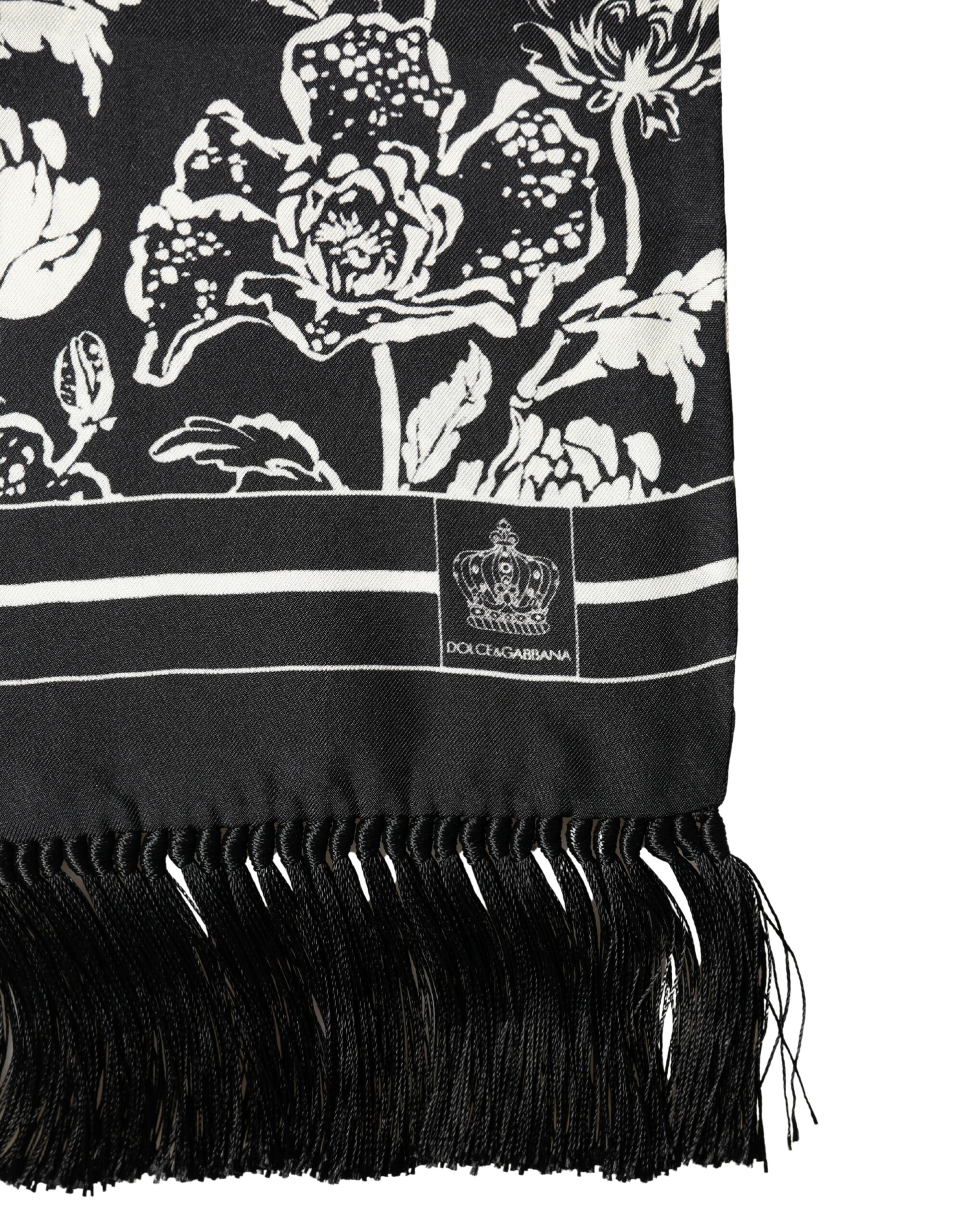 Black White Silk Floral Print Fringe 136cm X 15.5cm Scarf