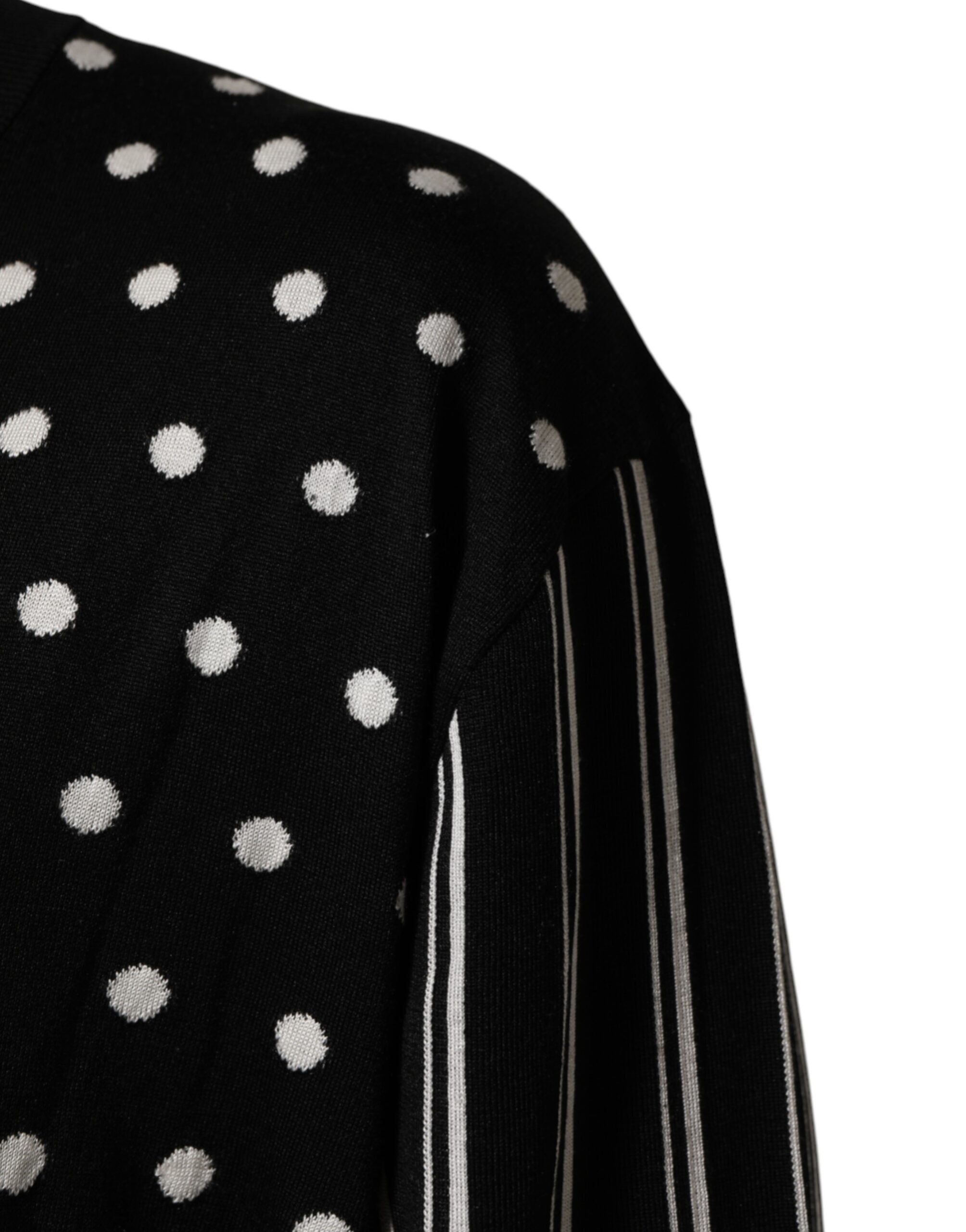 Black White Stripe Polka V-Neck Pullover Sweater