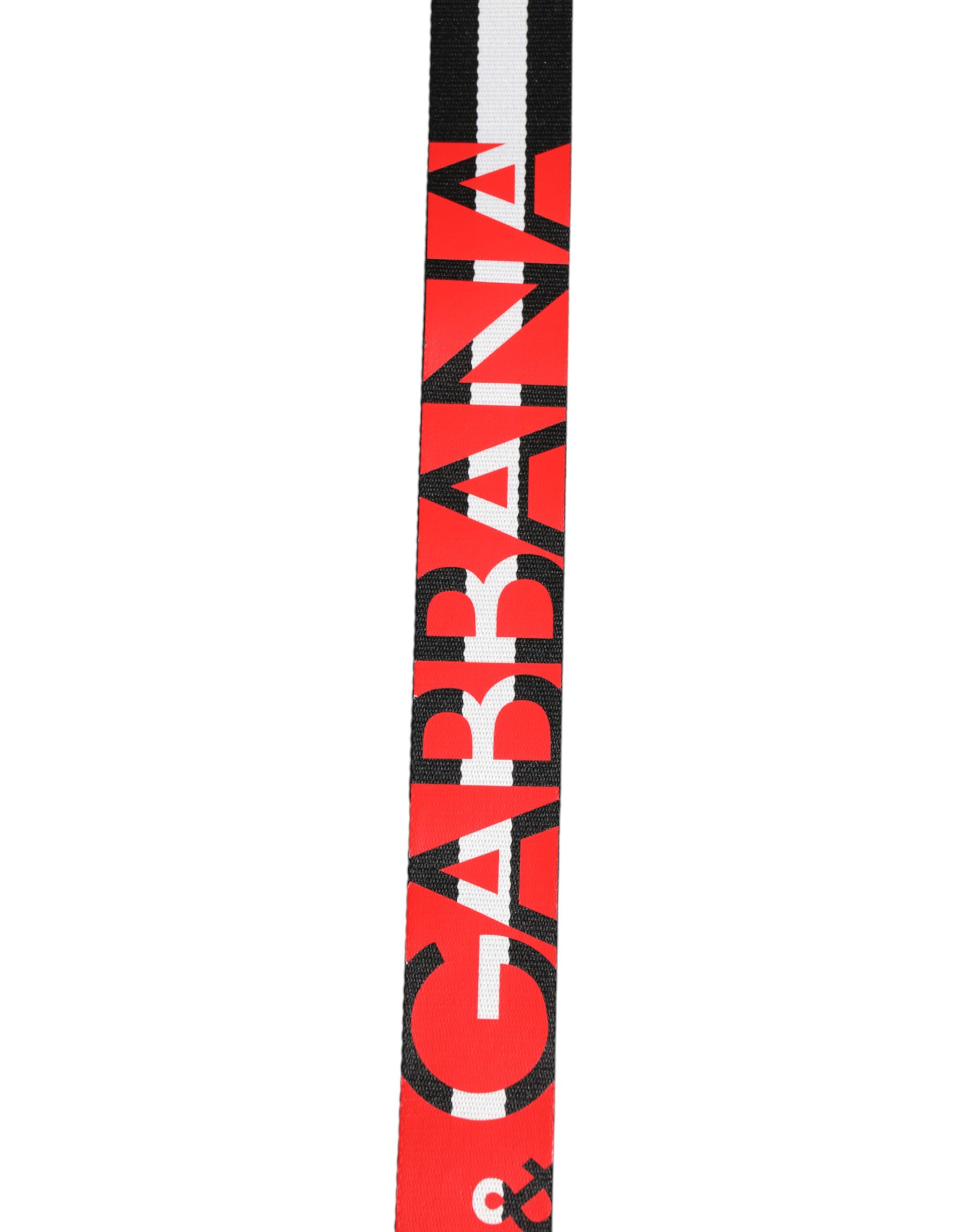 Black White Striped Logo Metal Buckle Belt