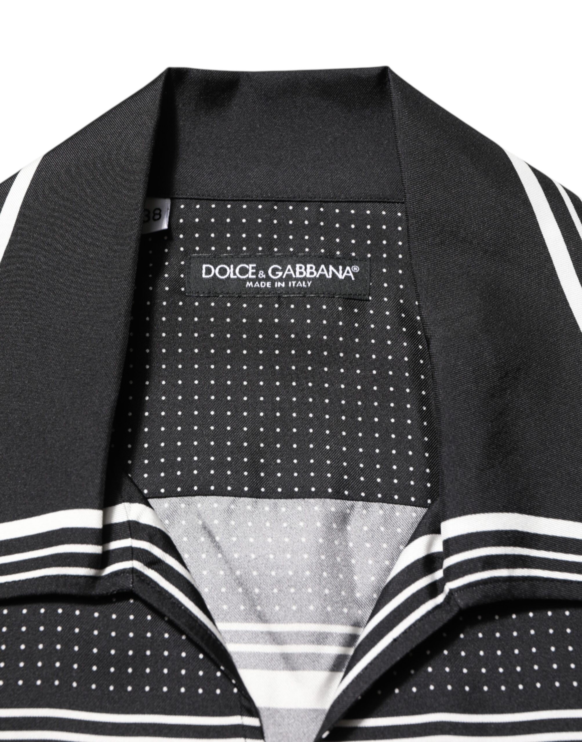 Black White StripeDot Print Casual Polo Shirt