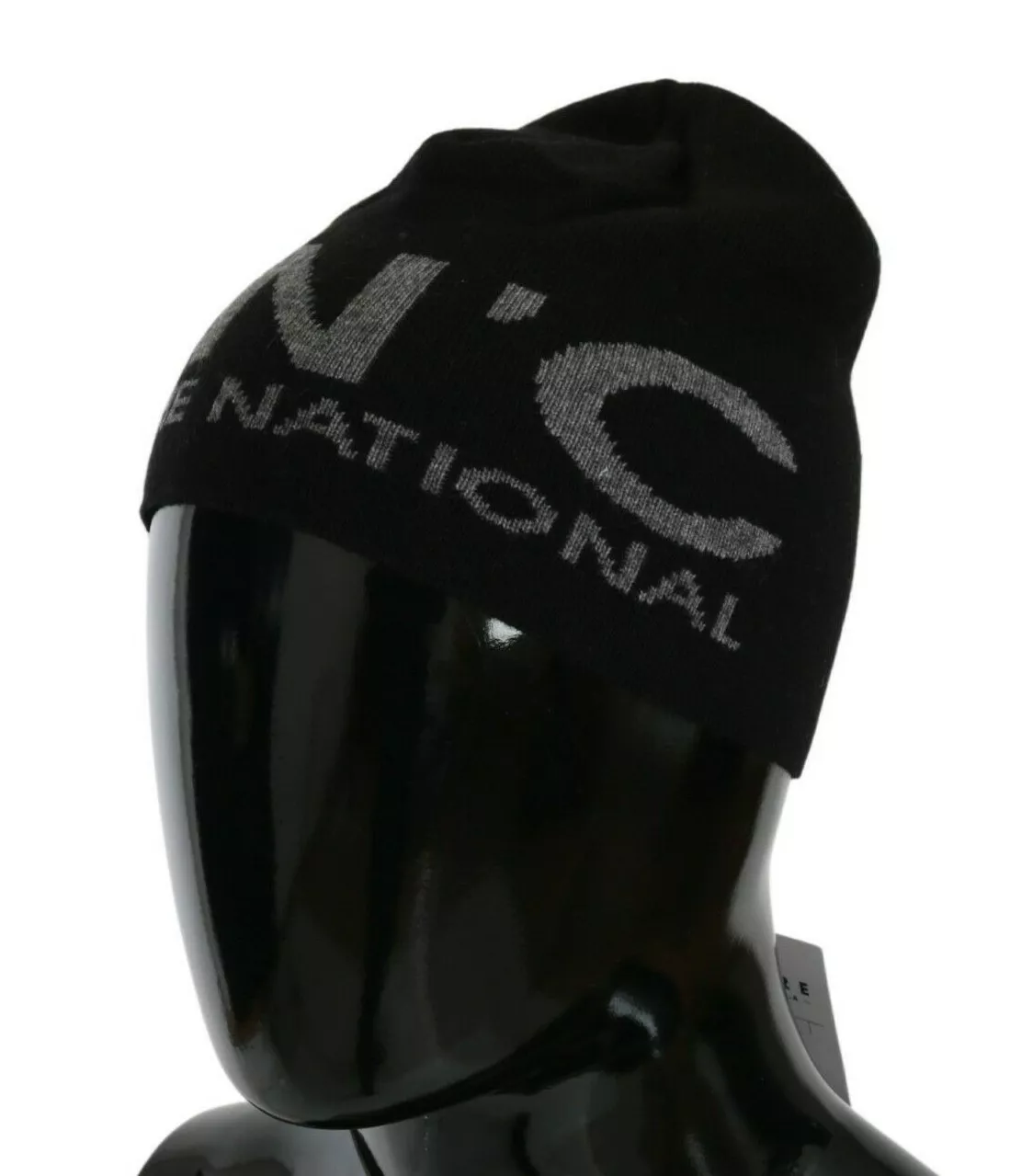 Black Wool Blend Branded Beanie Hat