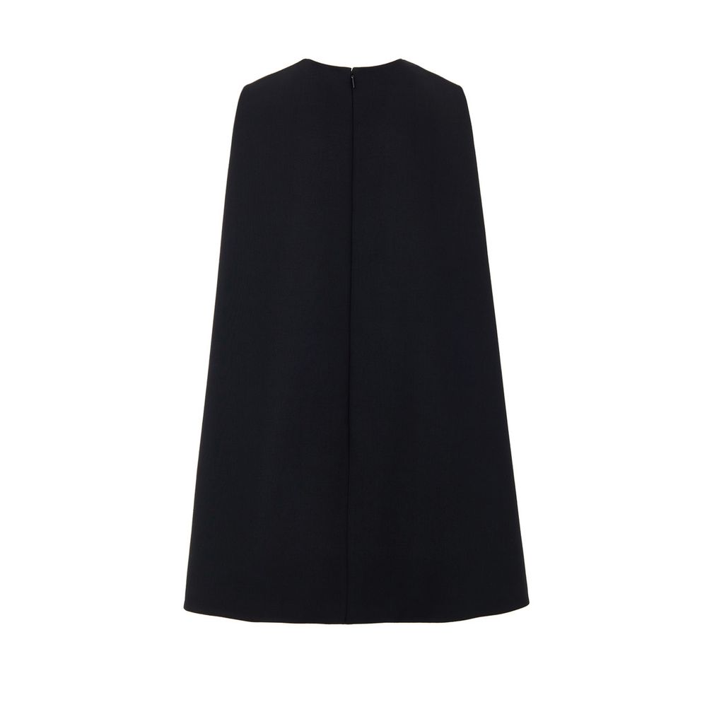 Gucci Short Sleeveless Bell Dress. In black wool, two side welt pockets, hidden zip opening at the back. 60s-inspired model with round neckline and fabric pleat stitching on the sides. Tone-on-tone logo embroidery on the bottom. Composition: 100% Wool Internal SKU: 25GIU194 Brand SKU: 805938ZACKN1000