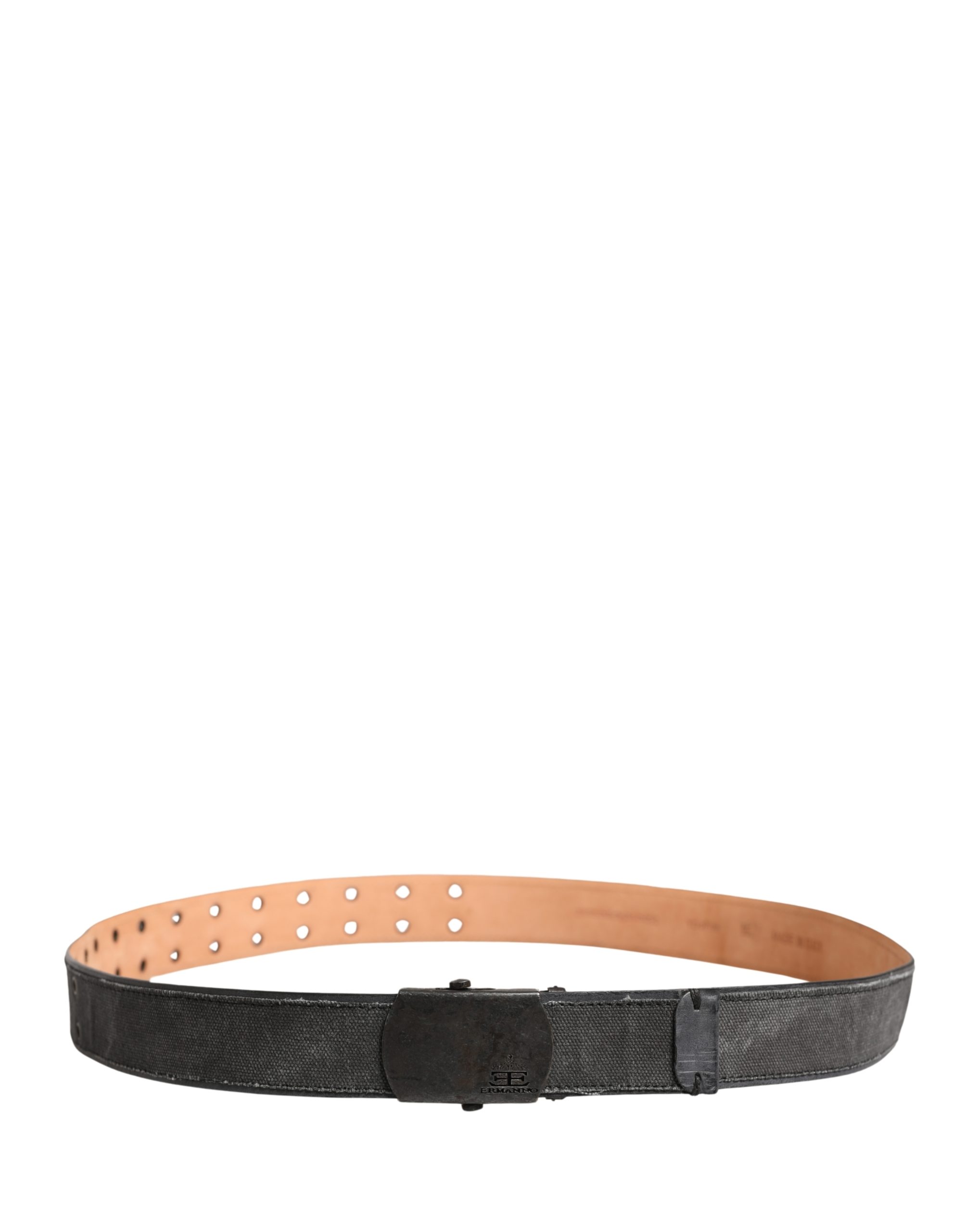 Black Wool Cotton Logo Metal Buckle Belt