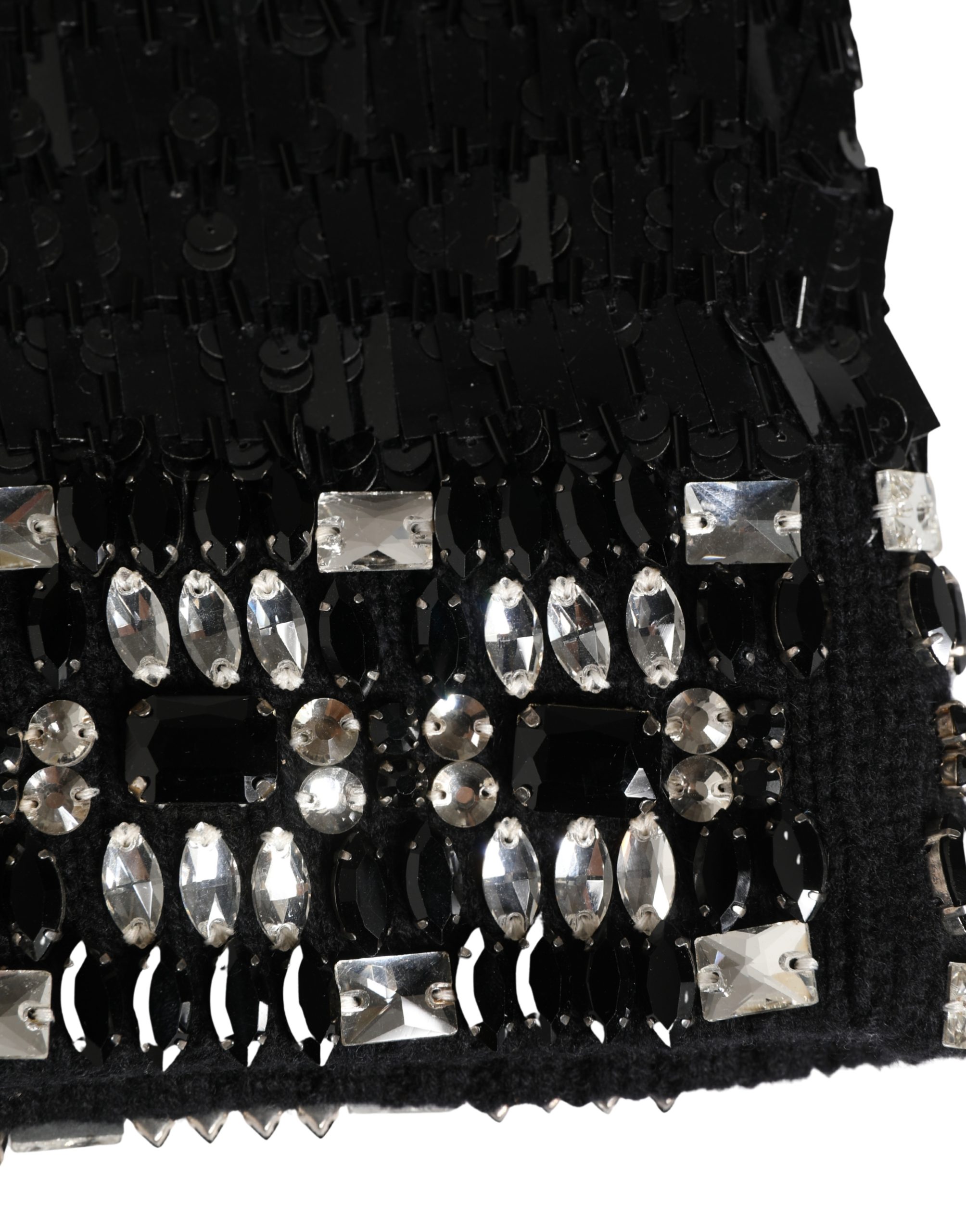 Black Wool Crystal Embellished Balaclava Hat